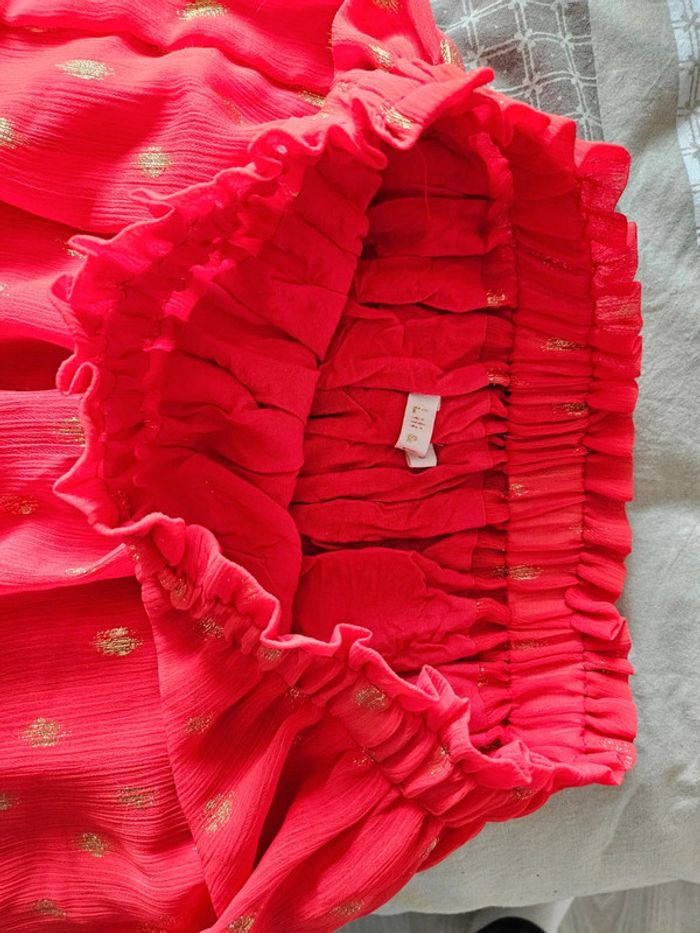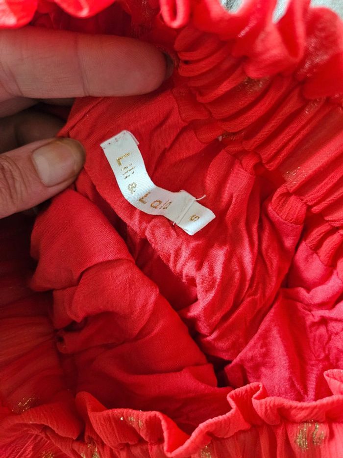 📌 Lot 20% de remise pour l'achat de 5 articles, suite ... Jupe rouge et doré, en voile avec des volant, doublée, taille élastique, ➡️Largeur taille 35 cm ➡️Longueur 44 cm ➡️polyester ⭐ Excellent état ✈Envoi rapide des colis 💗 Abonnez vous à mon profil, nombreux articles ajoutés régulièrement ! 🌸 Tapez Laetitresors pour voir mes annonces #laetitresors_jupe36 #jupe #lili #lala #rouge #dore #motif #taille #elastique #evasé #fluide #courte #été #laetitresors