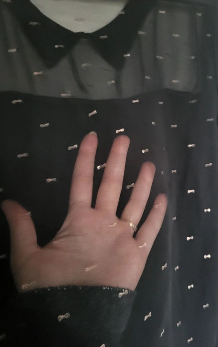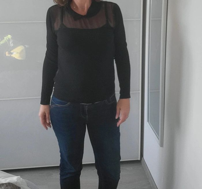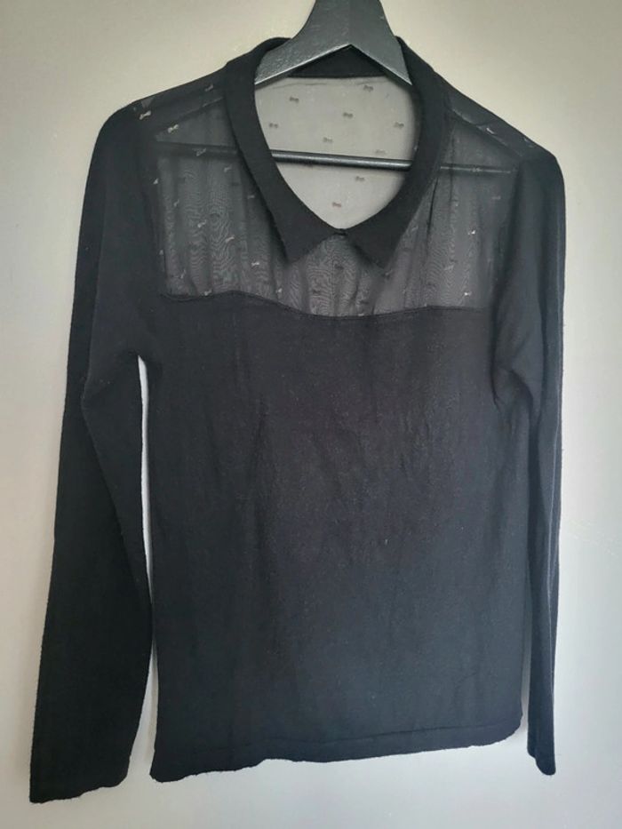 📌Lot 20% de remise dès 5 articles Blouse noire bi matière , voile transparent sur le haut et dans tout le dos, avec motif des petits nœud dorés, col chemise ➡️ Largeur à plat sous les bras : 48 cm ➡️ 45% viscose 55% nylon ⭐Excellent état ✈Envoi rapide des colis 💗 Abonnez vous à mon profil, nombreux articles ajoutés régulièrement ! #laetitresors_blouse38 #blouse #noire #voile #dos #tranparent #la #petite #etoile #chic #col chemise #beige doré #top