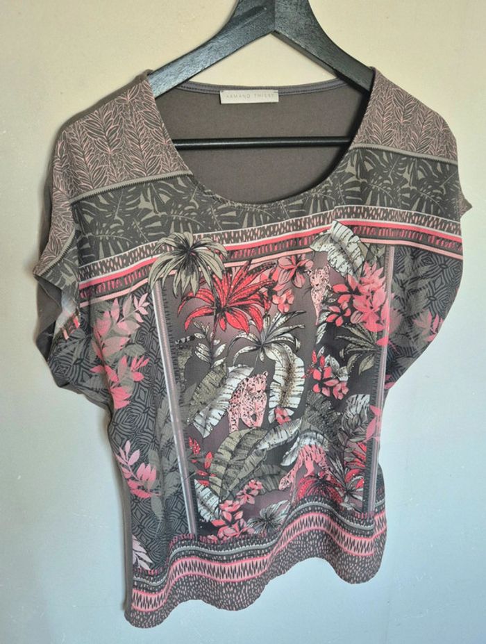 📌 Lot 20% de remise pour l'achat de 5 articles, suite ... Blouse kaki et rose à à motif tropical, manche courte, ➡️Largeur à plat sous les bras  50 cm ➡️Longueur 64 cm ➡️ Étiquette composition manquante ⭐ Excellent état ✈Envoi rapide des colis 💗 Abonnez vous à mon profil, nombreux articles ajoutés régulièrement ! 🌸 Tapez Laetitresors pour voir mes annonces #laetitresors_blouse40 #blouse #kaki #rose #feuille #tropical #manche #courte #chemisier #chemise #tshirt #armand #thiery #laetitresors