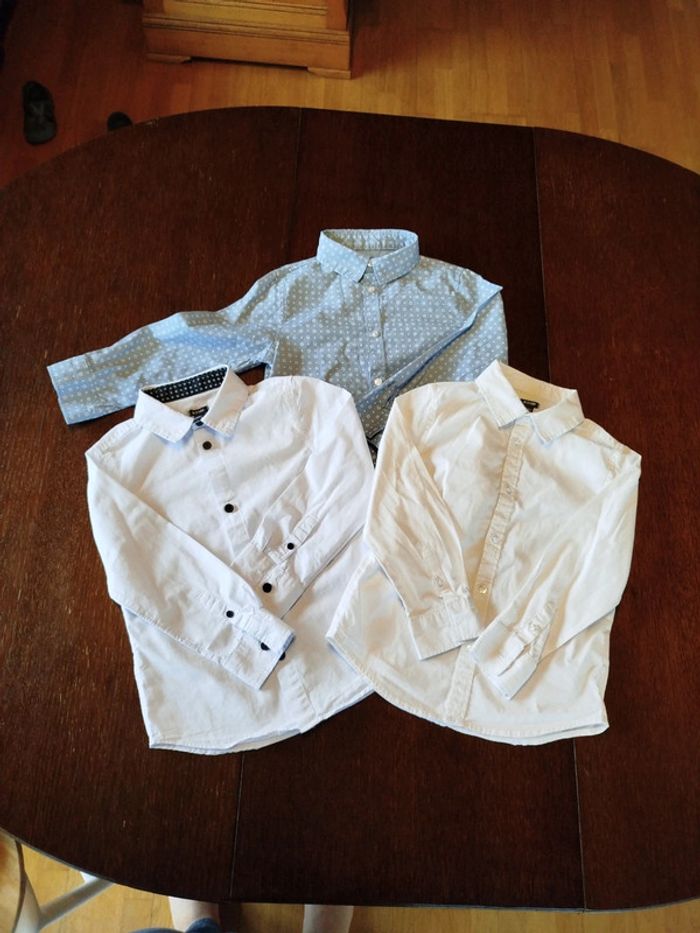 Lot de 3 chemises 2 blanches et une bleue a motifs Excellent état Kiabi Taille 6 ans