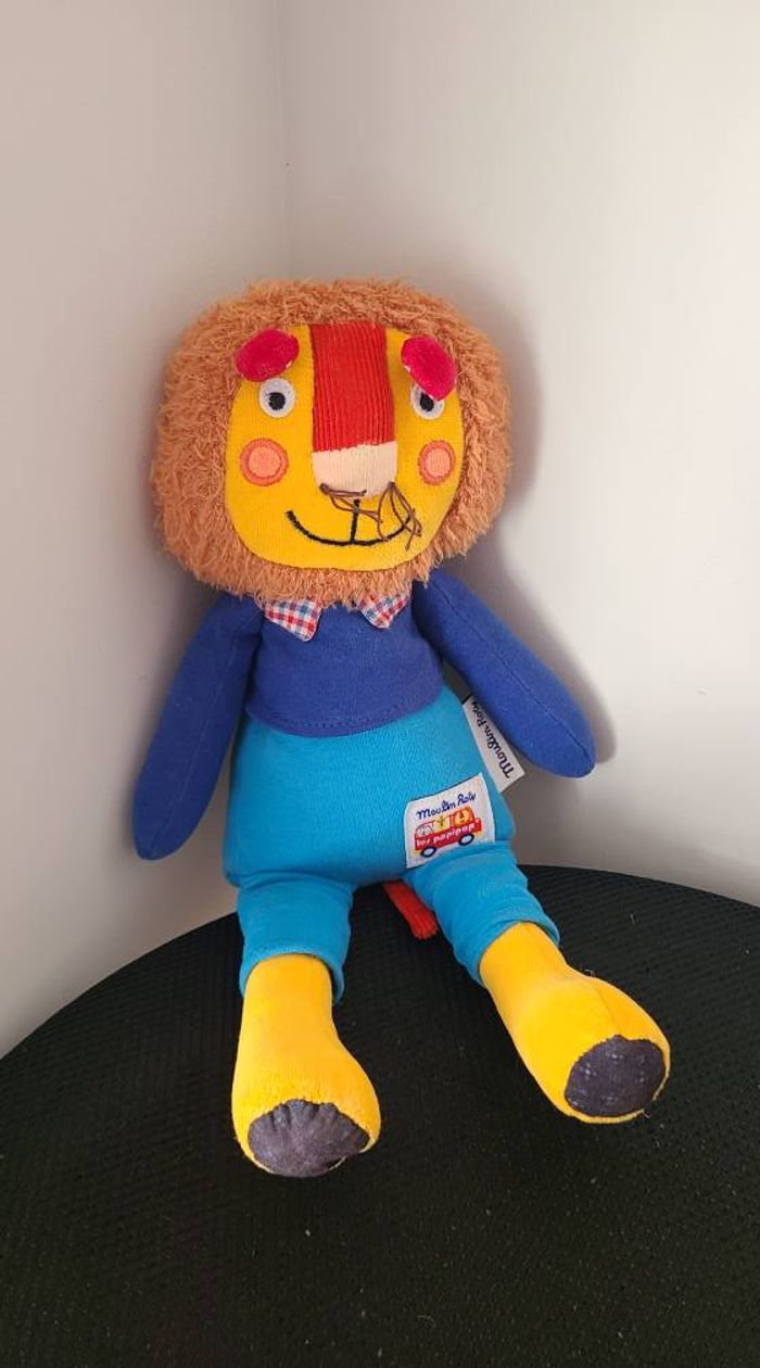 Doudou Peluche Lion marron orange bleu rouge 32cm Les Popipop Moulin Roty - photo numéro 1