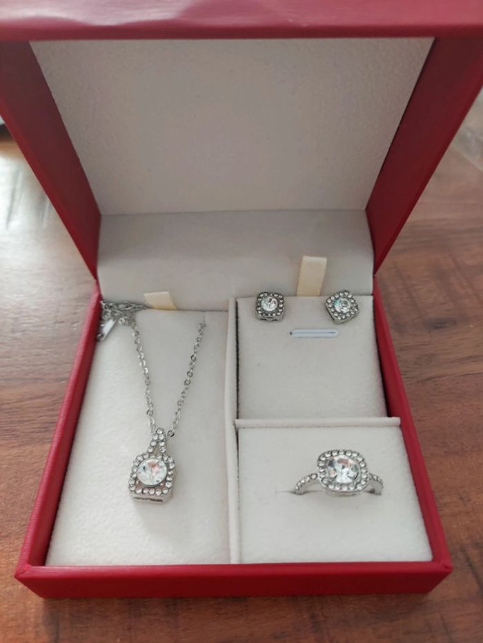 Boucle d'oreilles Colier Bague 💍 réglable #ensemblebijouxfemme Avec boîte idéale pour offrir