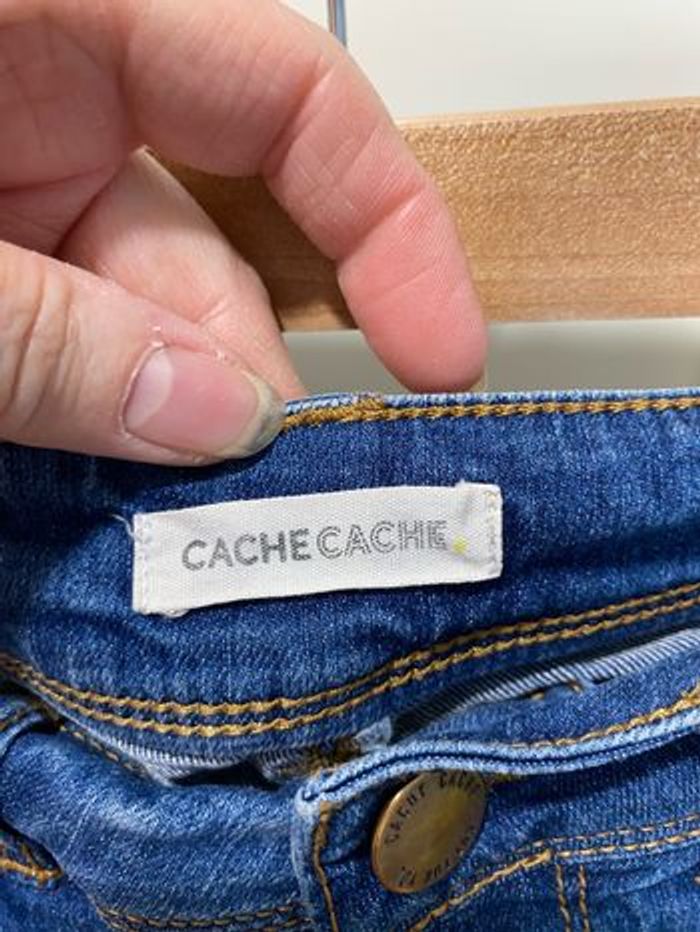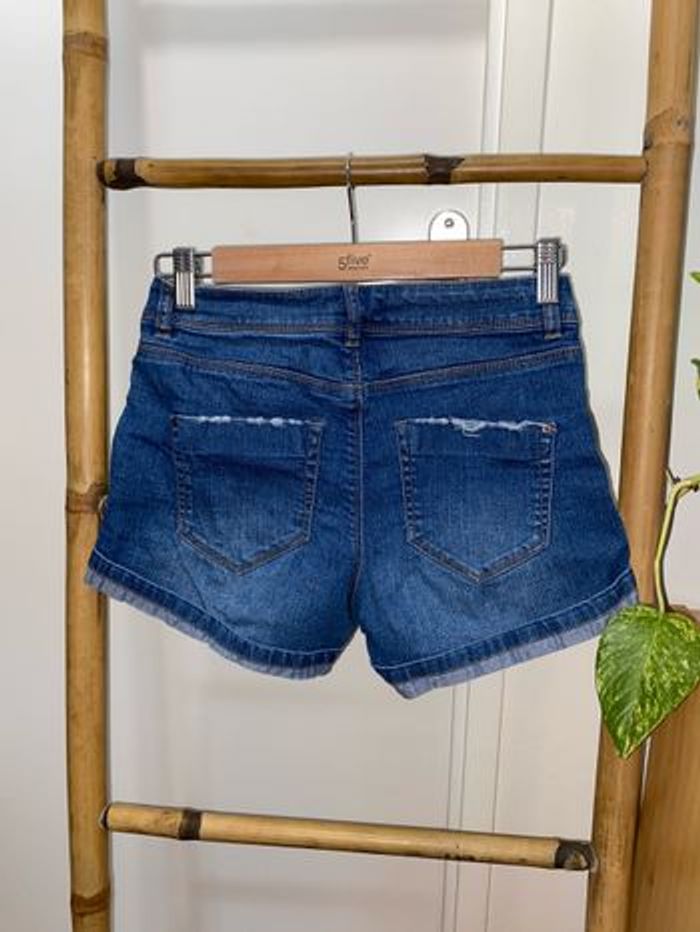 Short en jean troué femme Cache cache Taille 36 Couleur bleu stone 5 poches Dimensions: largeur de la taille 34cm, Longueur 26cm, Bouton et fermeture éclair En excellent état Envoie Rapide 👍