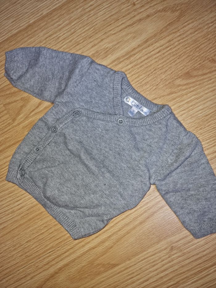 Bonjour, je vends ce gilet gris. Taille 0 mois de kitchoun. Très bon état