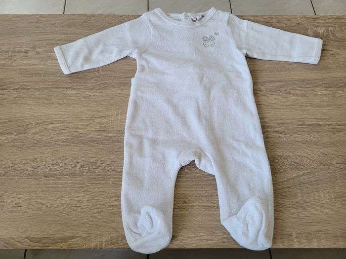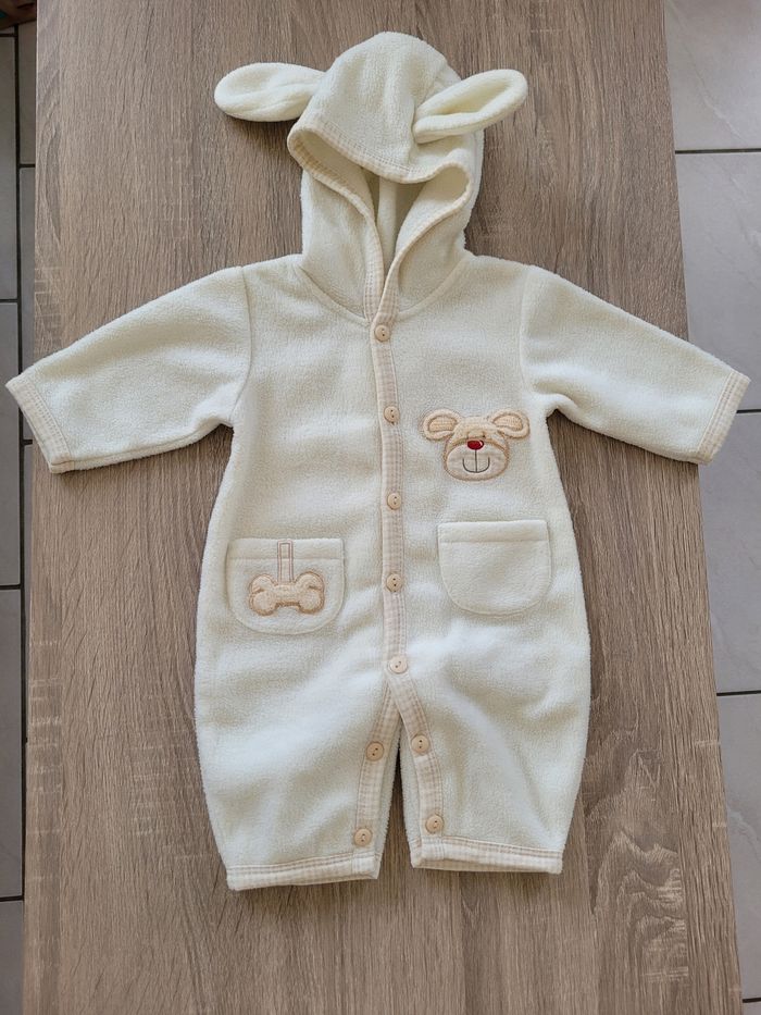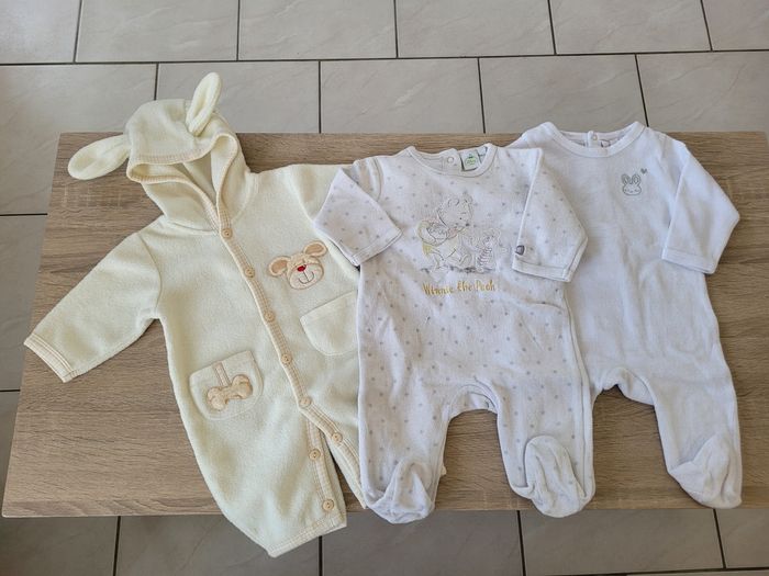 Vend lot de 3 pyjamas dont un en polaire sans pieds avec capuche à oreilles garçon taille 3 mois en bon état.