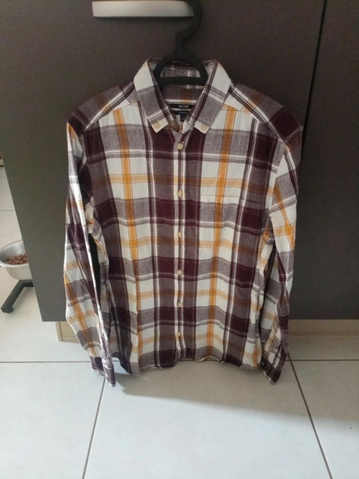 Chemise à carreaux blanc et bordeaux Taille S Regular Kiabi 100% coton
