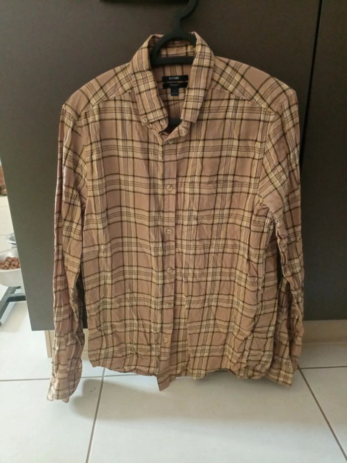 Chemise à carreaux jaune, beige et bleu Taille S Regular De Kiabi