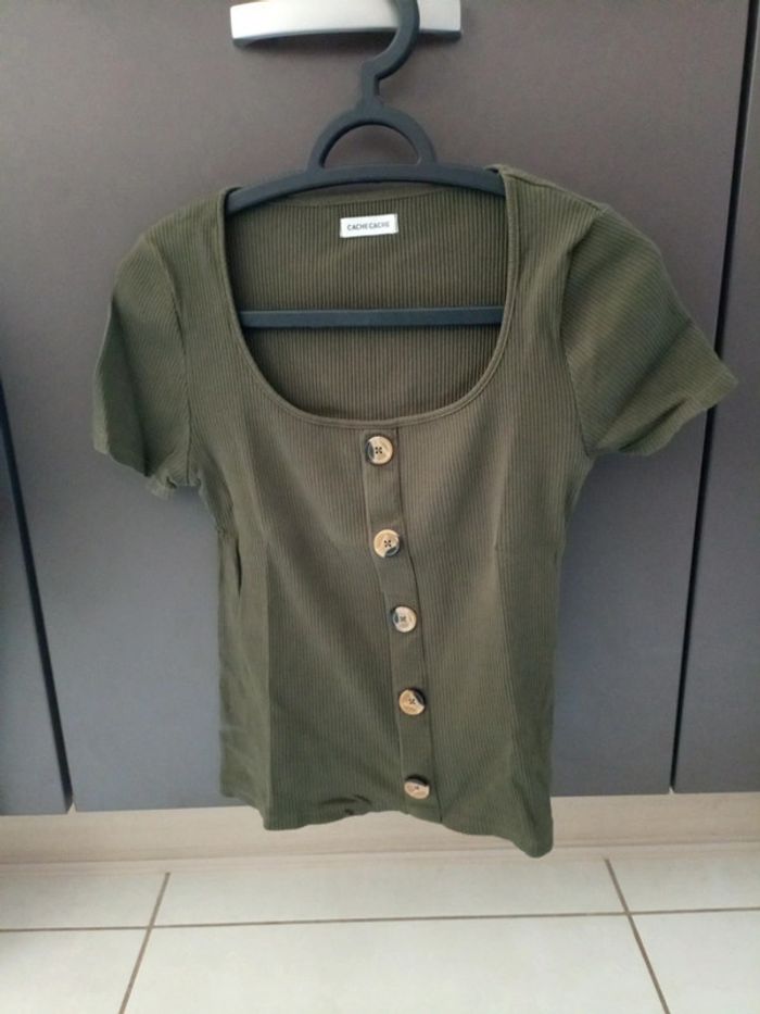 T-shirt kaki avec faux boutons Cache cache Taille M