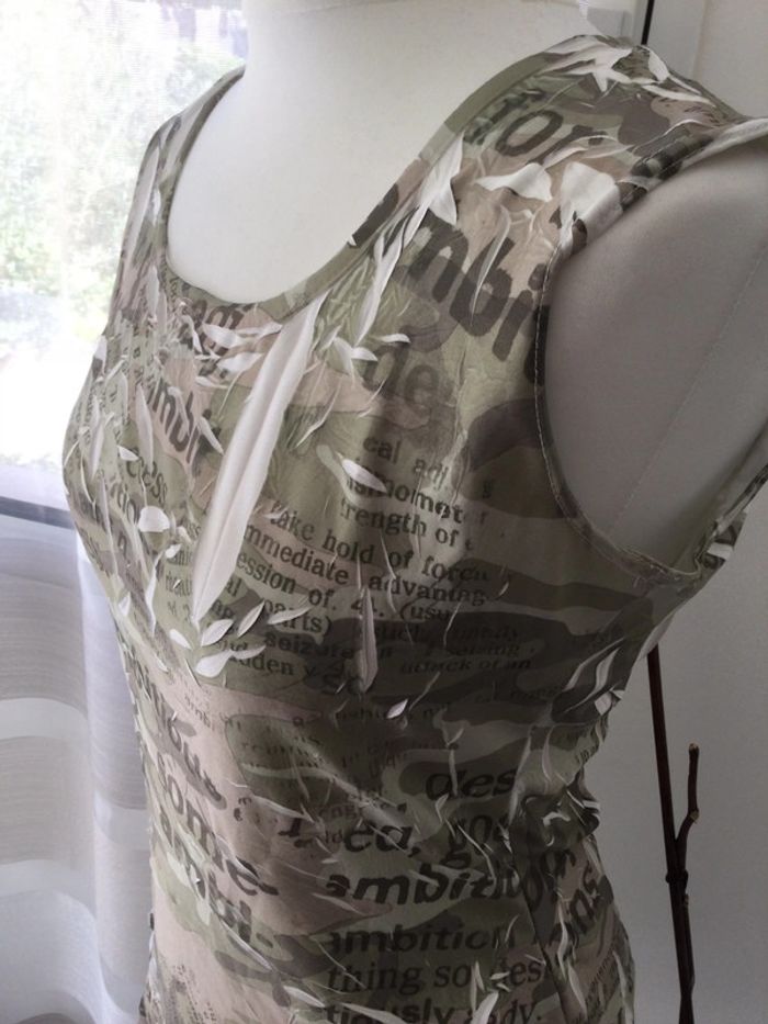 Tunique fantaisie a motif. Très agréable à porter. Sans manches. Non transparente Très bon état. Taille 2 correspond à un 38/40. Étiquette coupée. Marque Xanaka Couleur kaki et blanc Col rond #tunique #tuniquefemme #tuniquefemme3840 #tunique40 #tuniquesansmanche #tuniquesansmanches #tuniquekaki #tuniquekaki40 #tuniqueblanche #tuniquefantaisie #tuniqueoriginale #tresbonetat #trespeuporté #xanaka #xanaka40 #hautfemme40 #blouse40 #blousefantaisie #tshirtfemme40