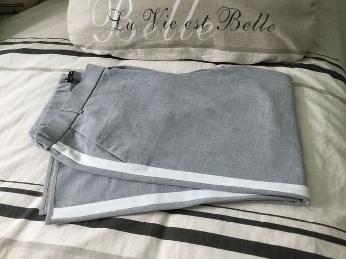 Pantalon gris avec une bande blanche sur le côté. Marque Zara. style sportwear. Très bon état. Taille 38. #pantalon #pantalongris #pantalonblanc #pantalonsylviedib #pantalonfemme #pantalonfemme38 #pantalonzara #zara #tresbonetat #sportswear