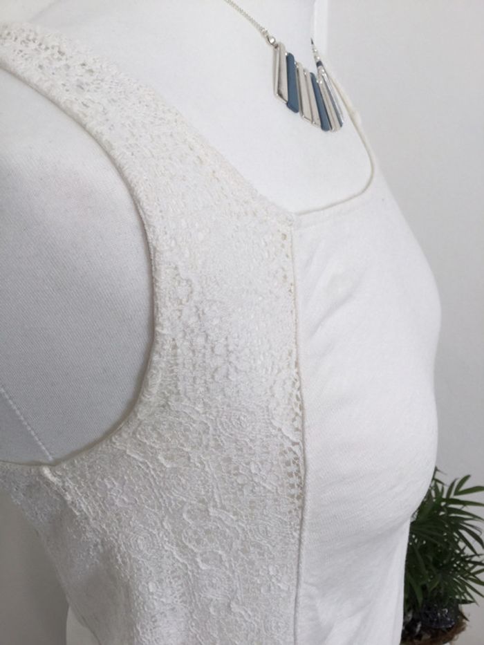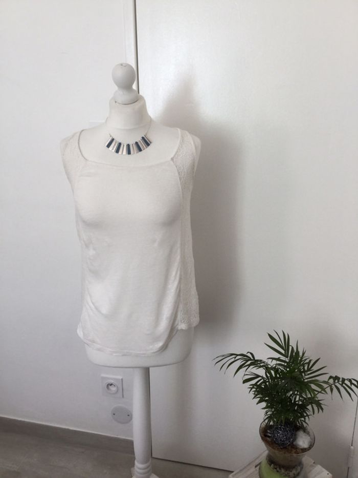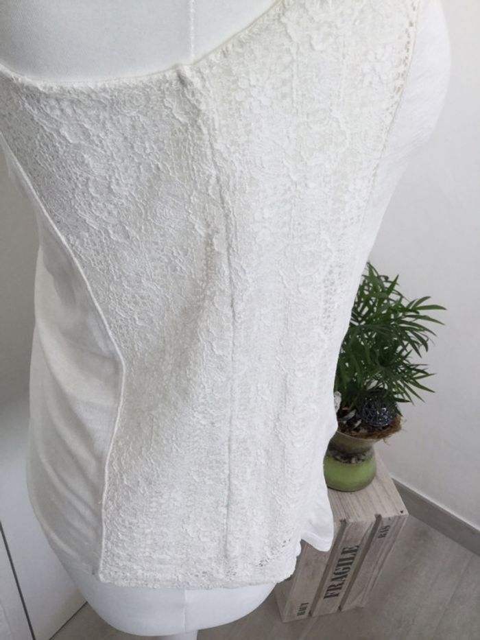 t-shirt blanc Naf Naf avec dentelle sur les côtés et la partie haute du dos. très bon état et très peu porté. taille 38 #tshirt #tshirtblanc #tshirtdentelle #tshirtfemme #tshirtsansmanche #tshirtfantaisie #débardeurfemme #débardeur #debardeurnafnaf #debardeurdentelle #nafnaf #tresbonetat #ete #trespeuporté #38 #taille38