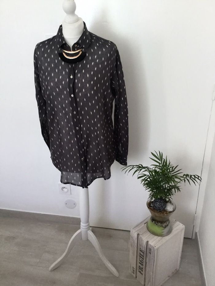 Chemise grise avec motif écru légère et un peu en transparence. très bon état #chemise #chemisefemme #chemisegrise #chemiselegere #chemisemotif #chemiseecru #chemisemango #mango #chemisemanchelongue #chemisetransarente #chemiseete #motif #36 #tresbonetat #sylviedib36
