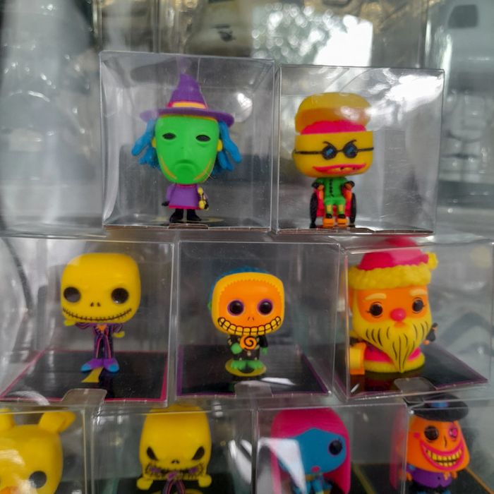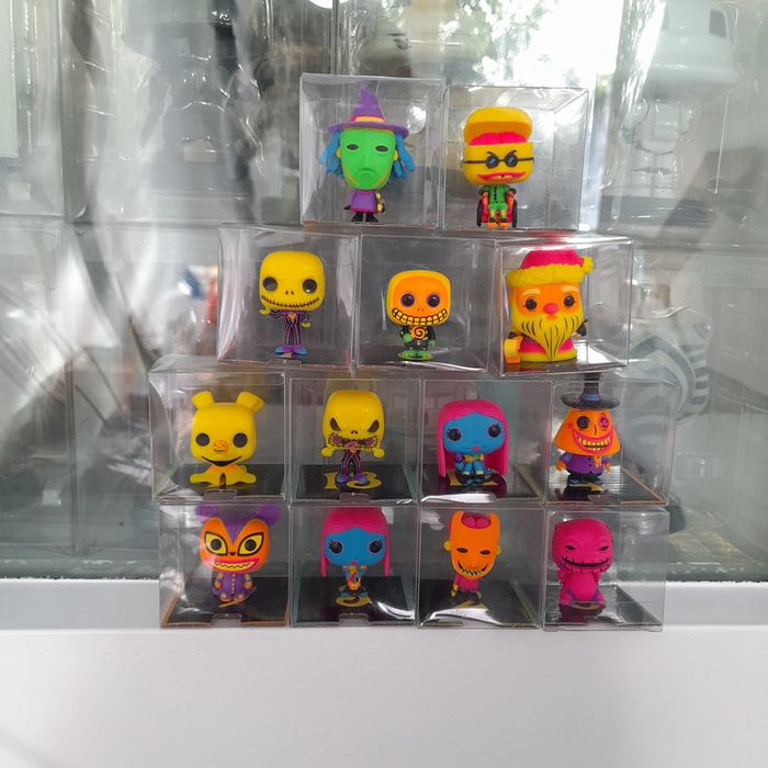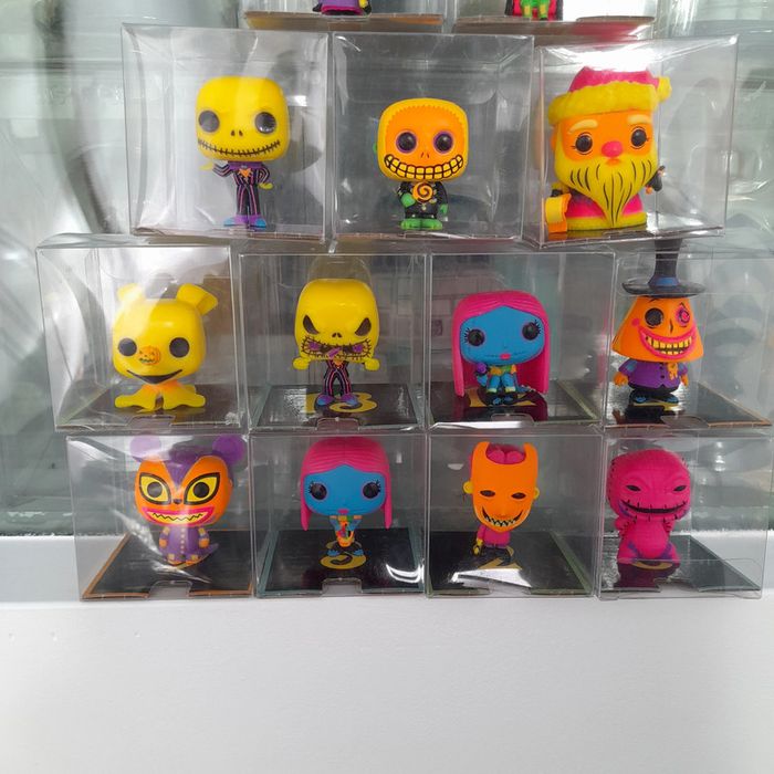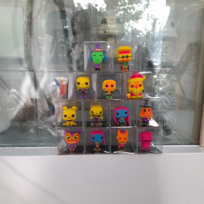 Lot de 13 pocket pop collés sur support carton avec mini boîtes transparentes 5x5x5cm . Idéal pour exposition C'est un custom que j'ai fait moi même . Les figurines sont comme neuves très peu manipulés, elle proviennent du calendrier de l'avant. Envoi soigné papier bulle et carton solide. Pour plus d'informations me contacter merci Jack Skellington zéro sally oggie etc...