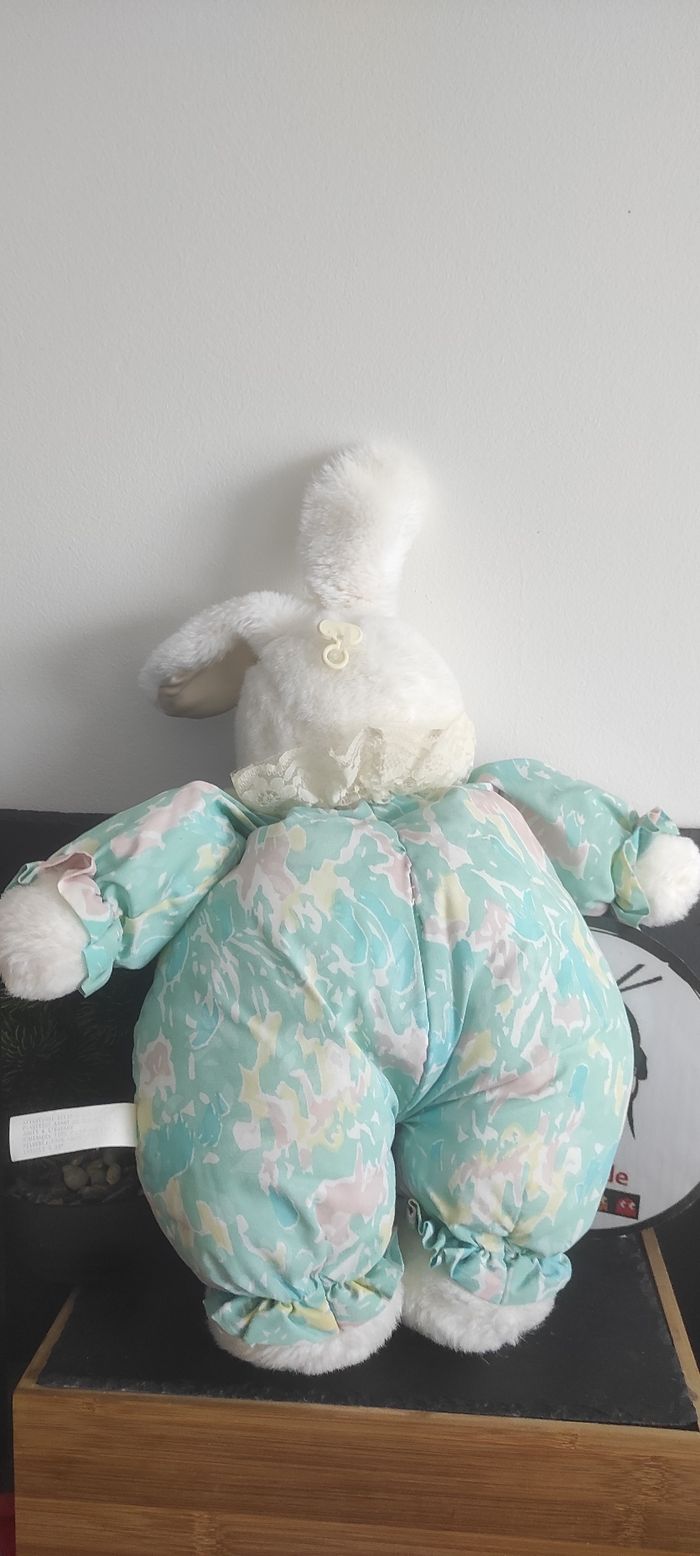 peluche ancien vintage lapin blanc vert jaune rose fleur noeud dentelle top company srl - photo numéro 1