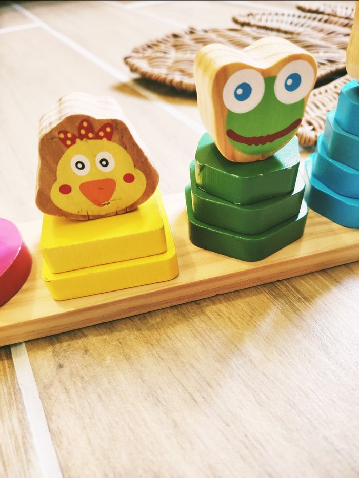 🐰 Formes géométriques multicolores avec animaux à trier et empiler en bois