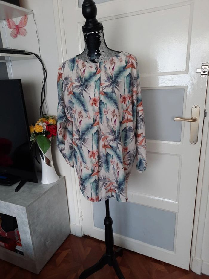 Attention à lire avant 😉😉 ---------------------------- Tunique manche longue taille 40/42 quelques petites bouloches et une micro pte tache enfet ce n est pas des taches cela va avec l imprimer😉😉 mais en bonne état N hésitez pas à faire un tour dans mon dressing et achetez en lot vous ferez des économies sur les fdp 😉 #moutsimoumounehabitfemmetaille40
