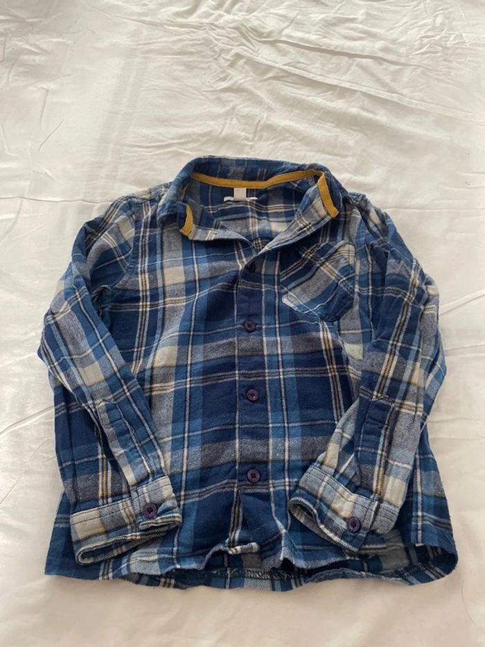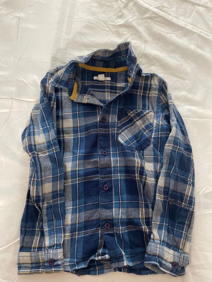 Vends chemise à manche longue esprit bleu et blanc à carreaux en bon état Taille 6-7 ans