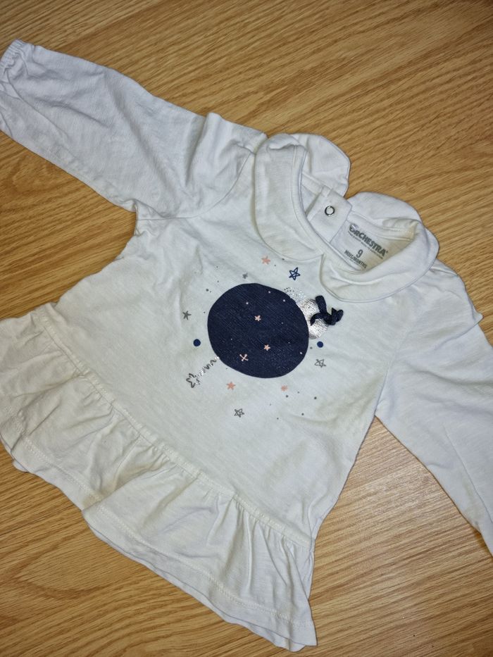 Bonjour, je vends ce haut à longues manches blanc. Taille 9 mois de chez Orchestra