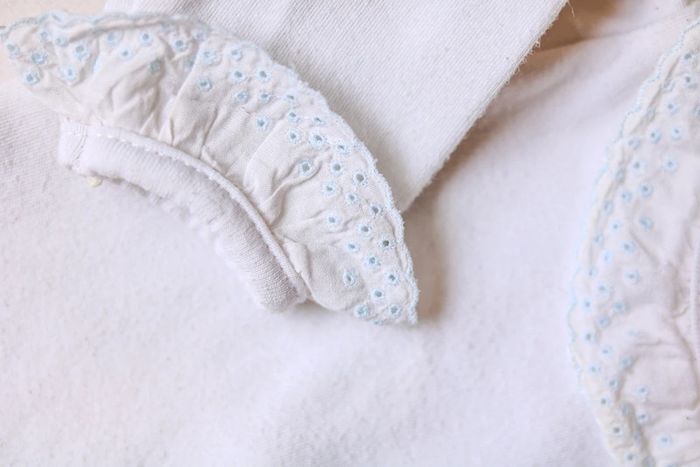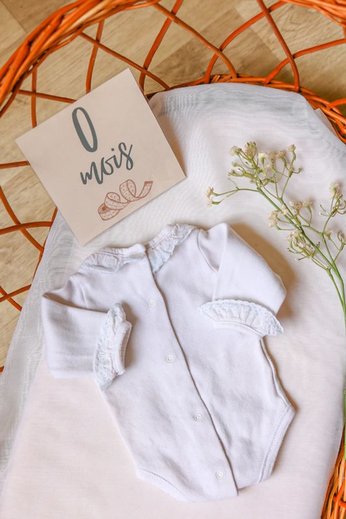 Body blanc manches longues col brodé bleu clair, Vintage, 0 mois - photo numéro 8