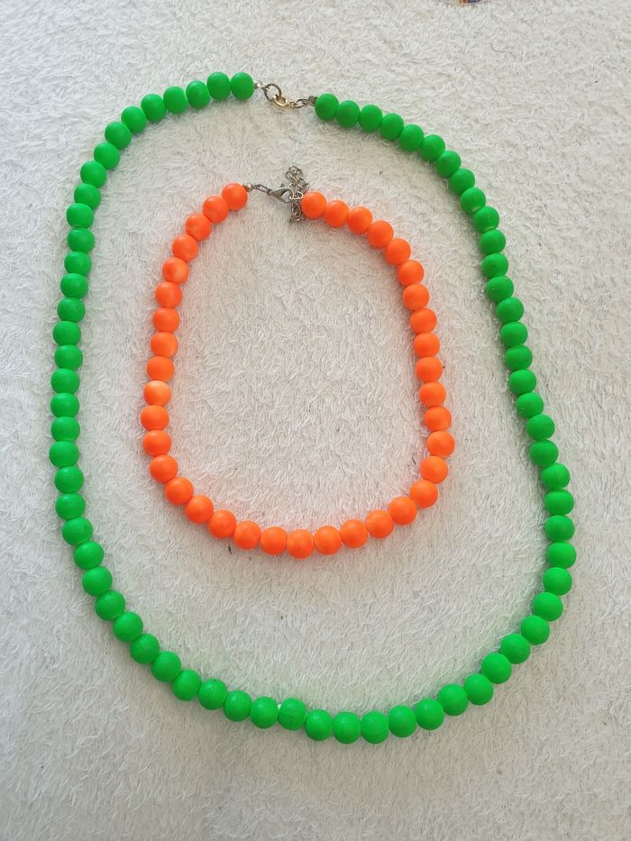 Lot de 2 colliers très colorés. 1 Orange et 1 vert. Les perles ont un touché effet silicone.