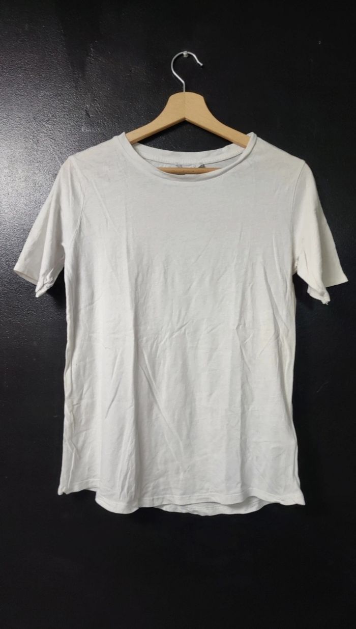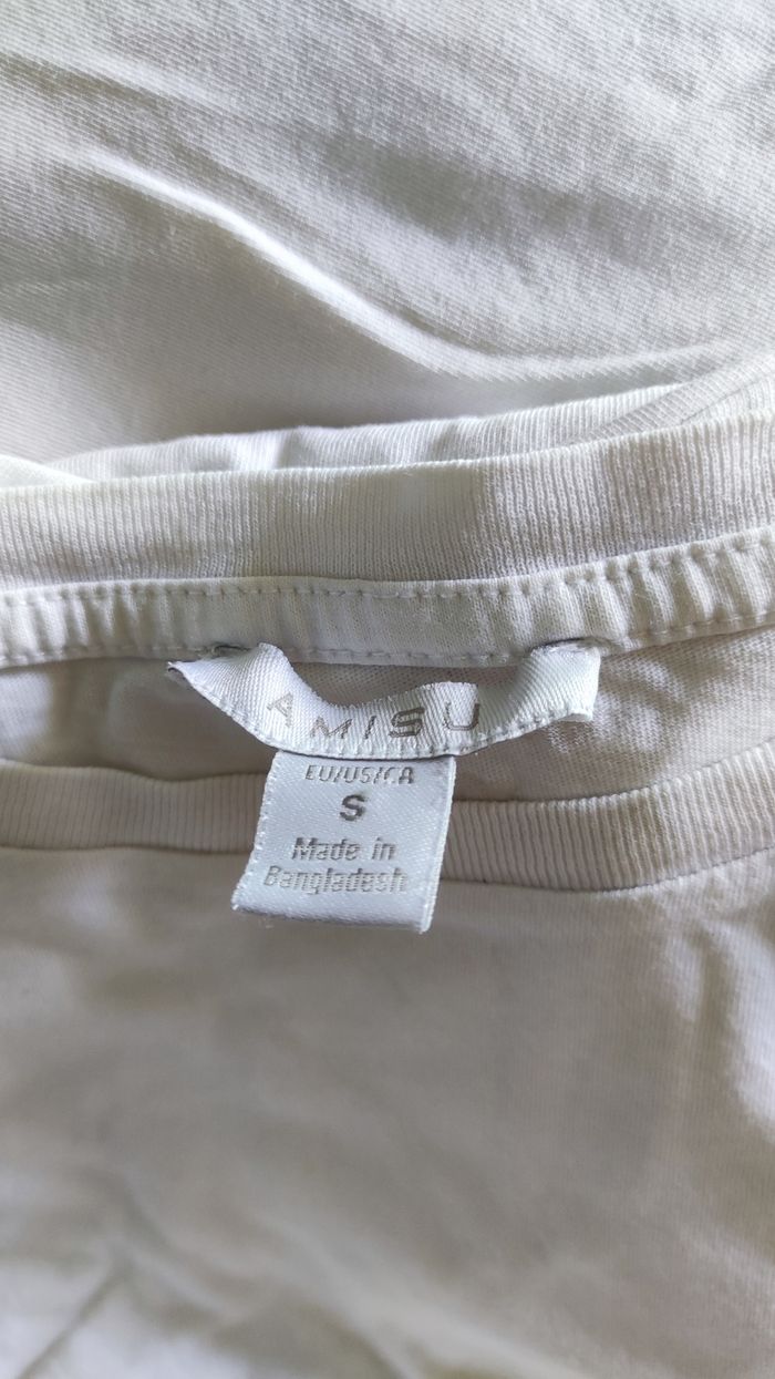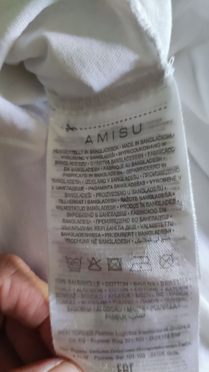 Tee-shirt manches courtes Homme Taille S Blanc uni Matière coton Marque Amisu Tache et un point de couture à faire voir photo Idéal pour s'en servir pour travaux ou autre afin d'éviter de salir