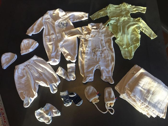 Trousseau de naissance pyjamas bodies langes bonnets moufles chaussettes - photo numéro 1