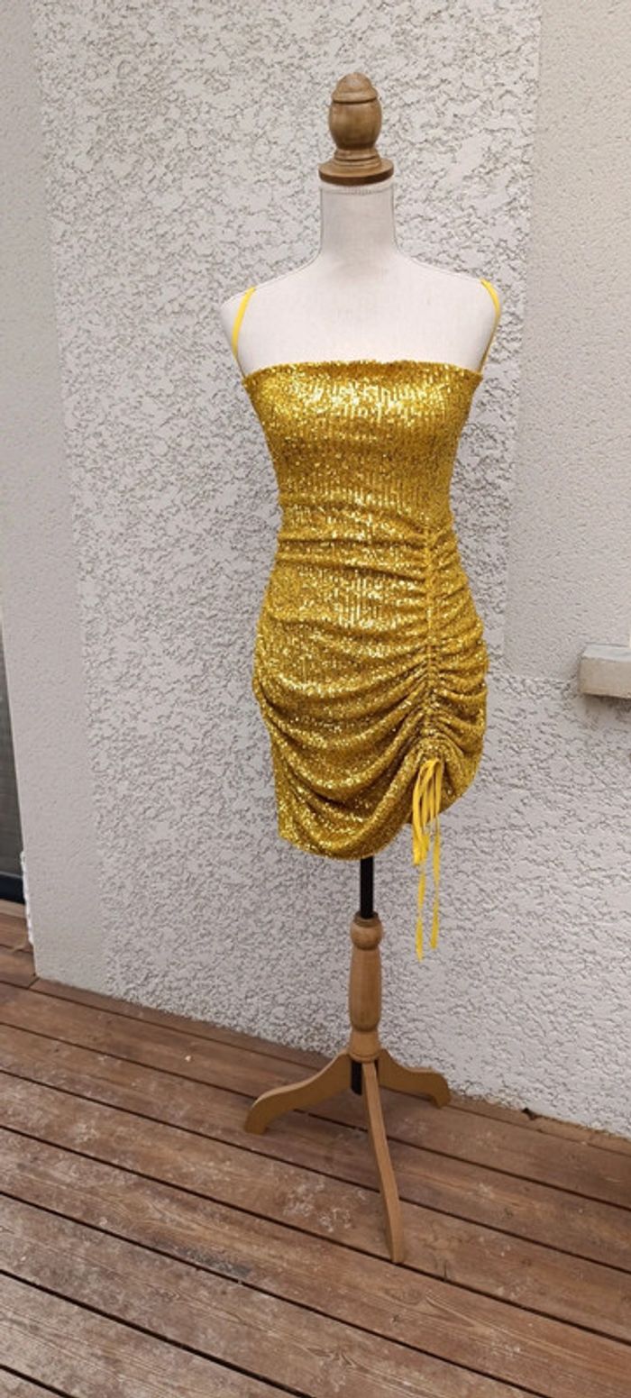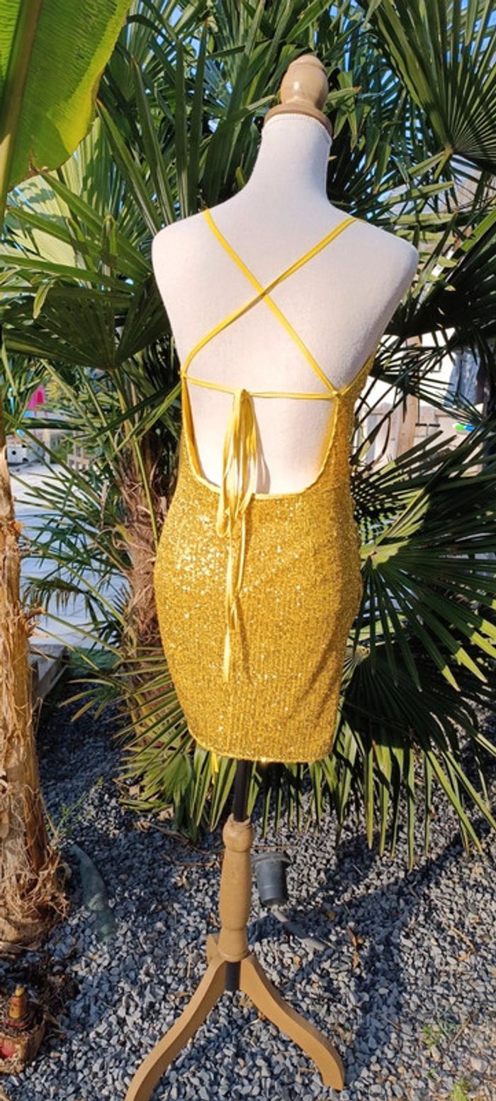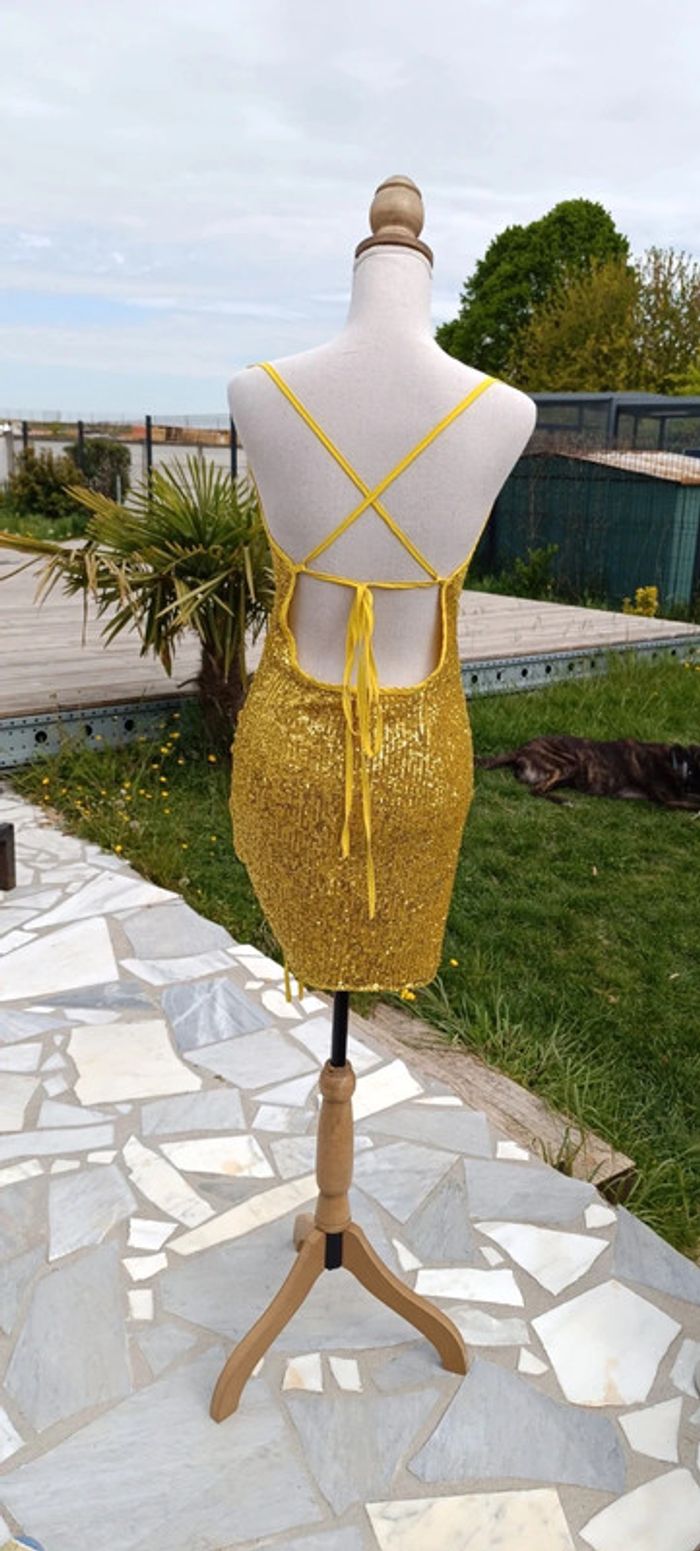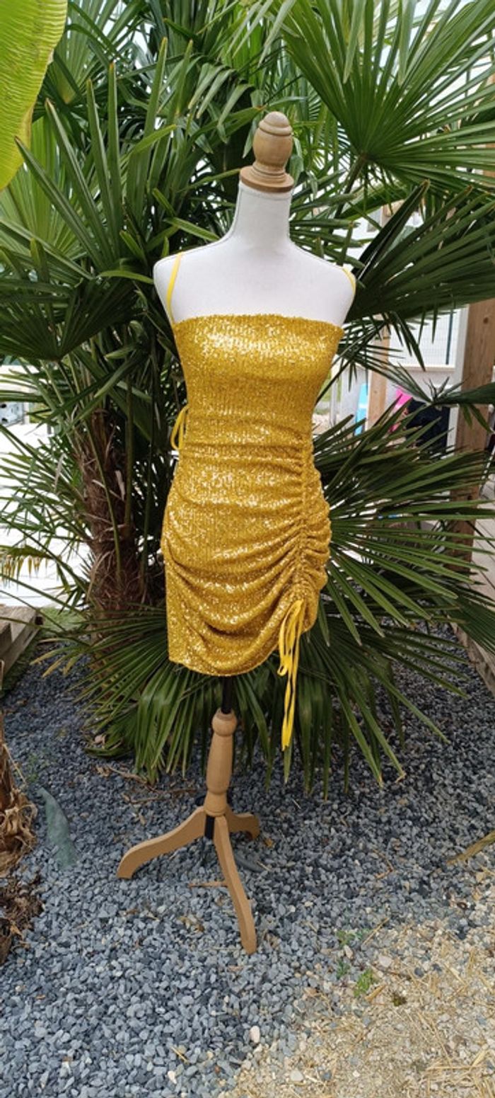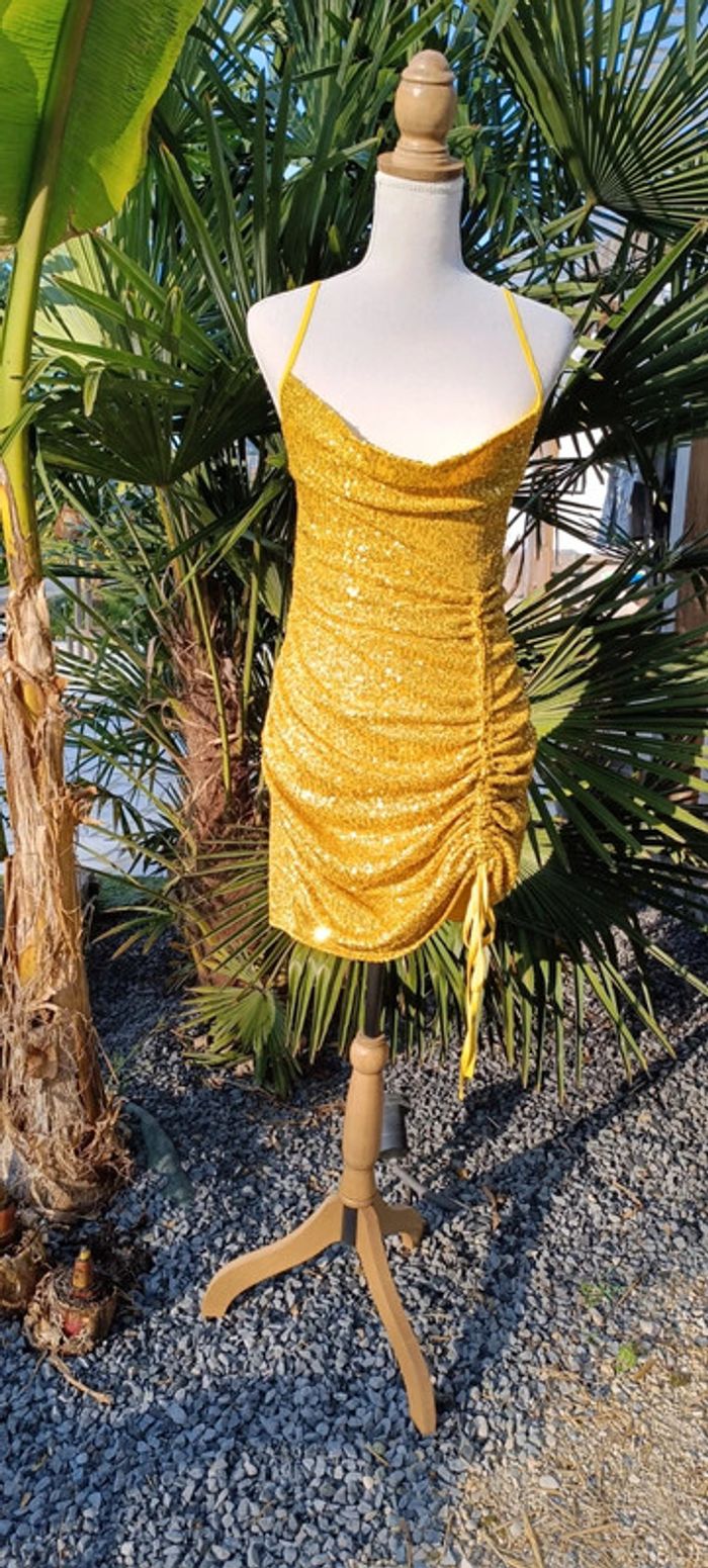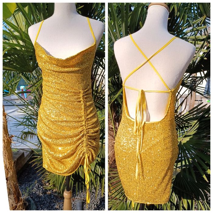 Robe paillettes jaunes dos ouvert pretty little thing taille M #julieVisM