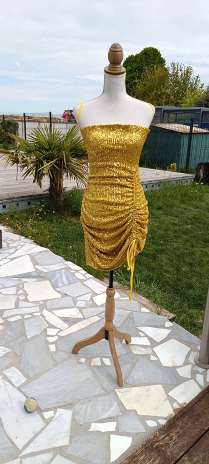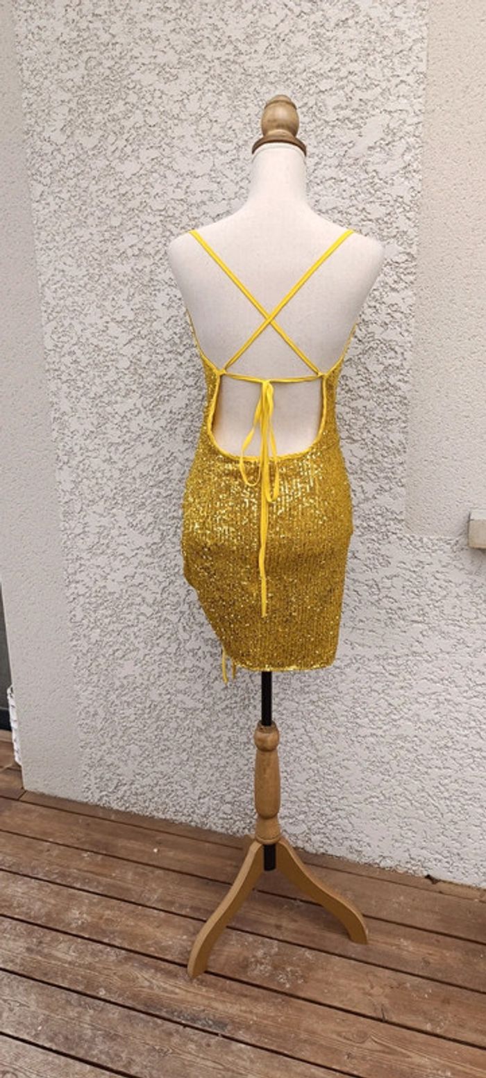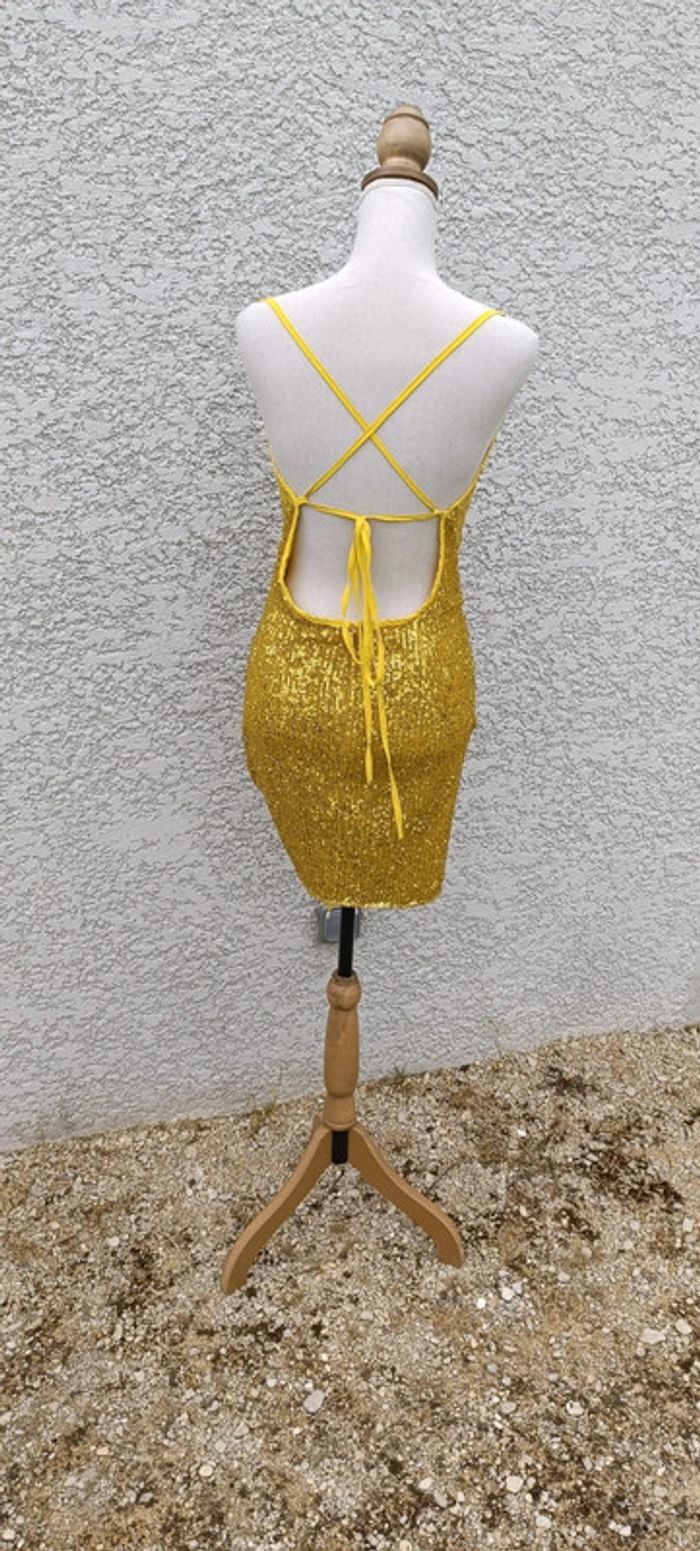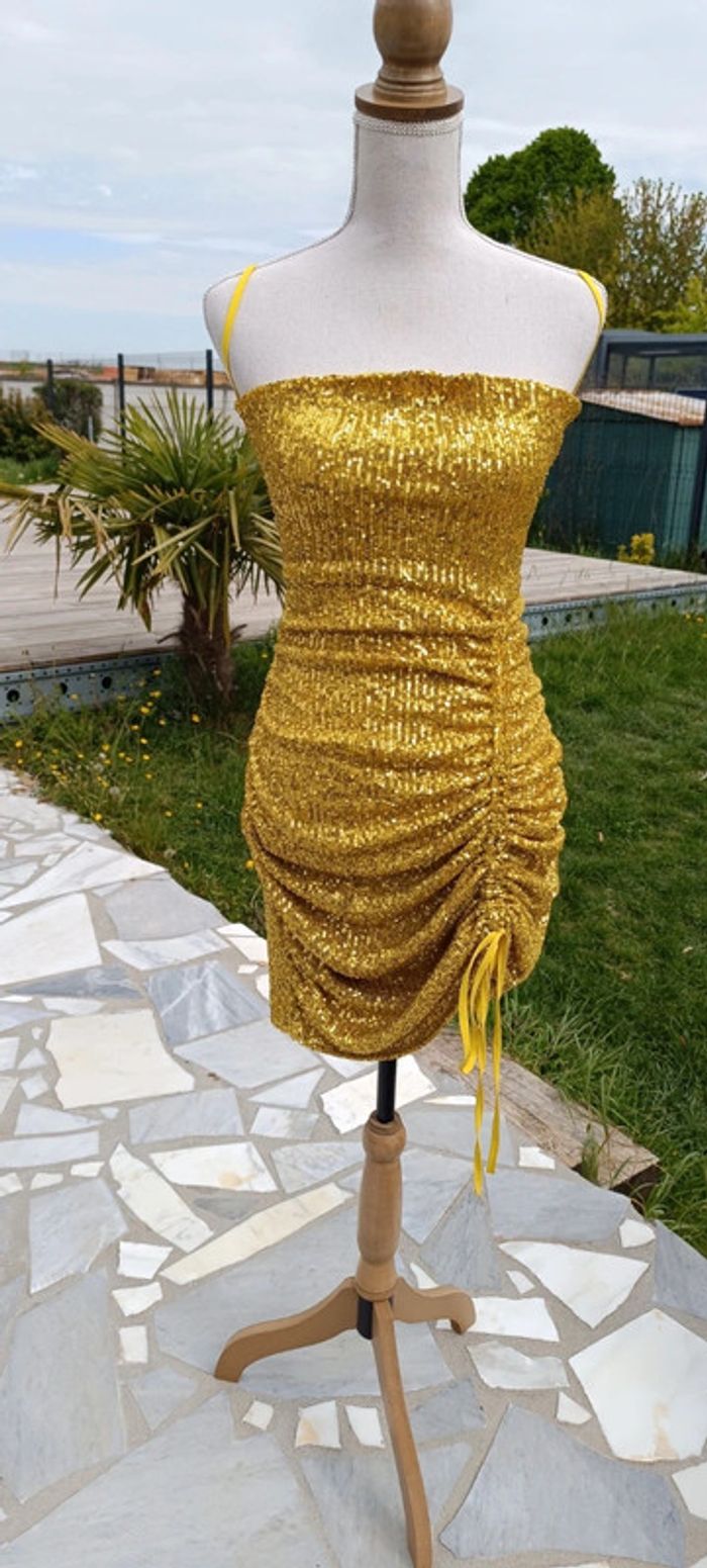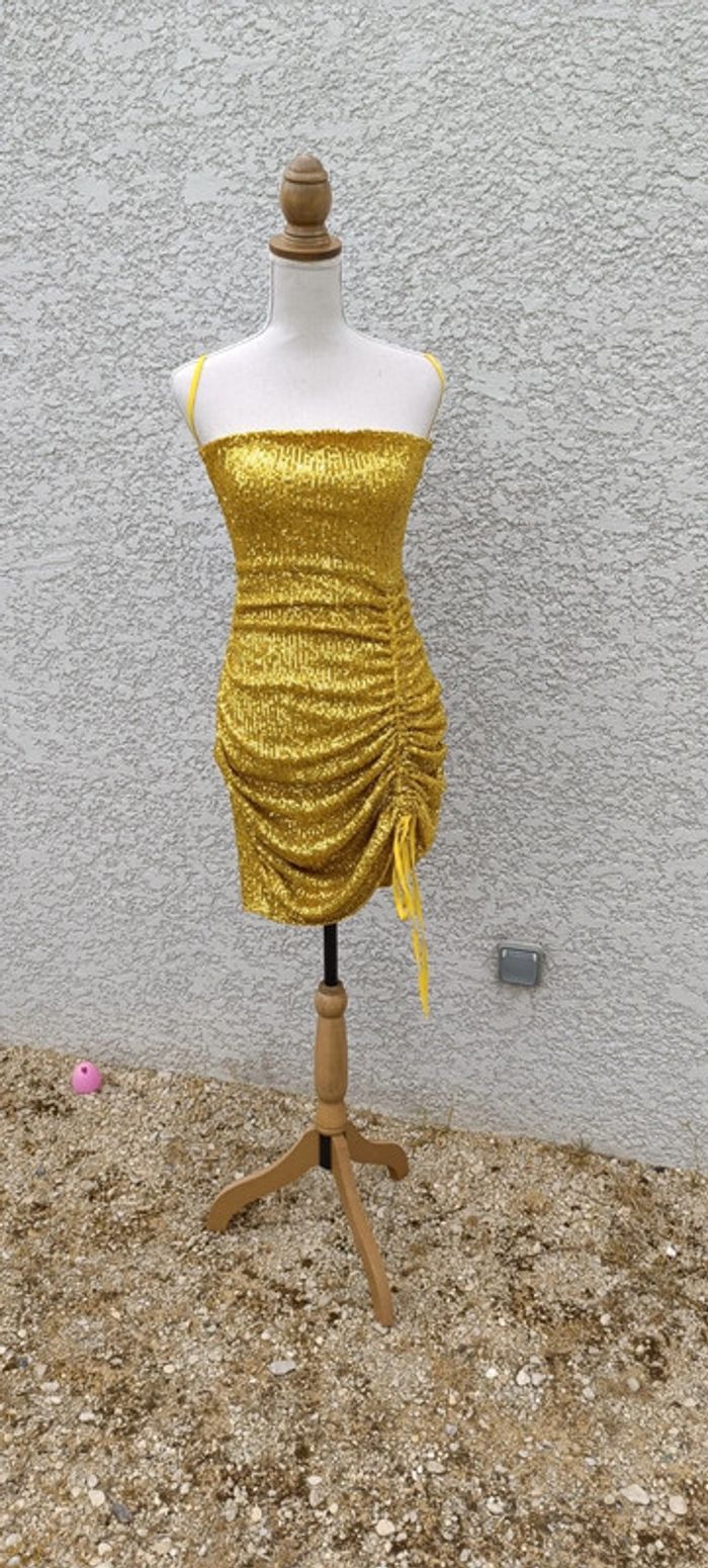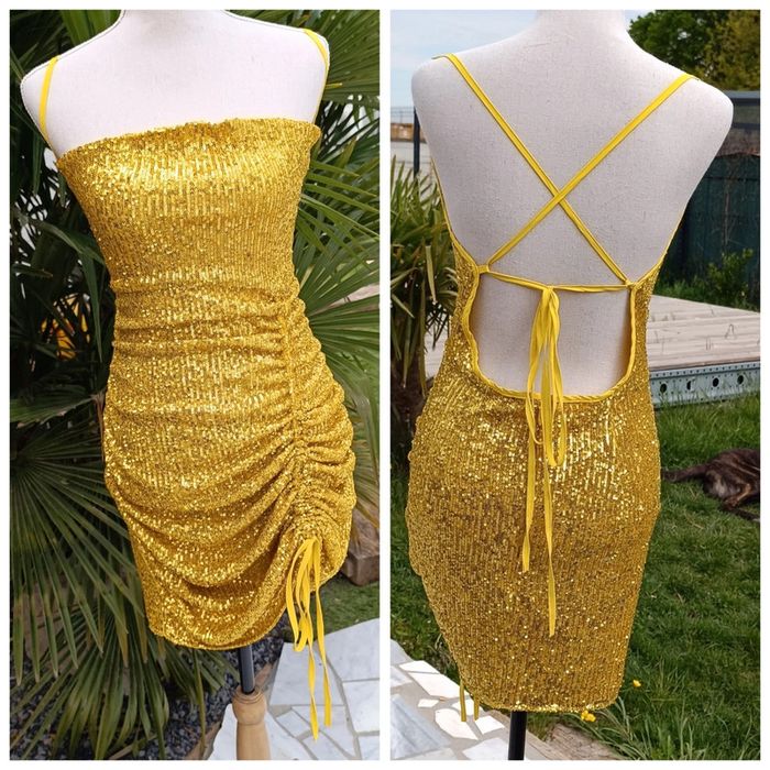 Robe paillettes jaunes dos ouvert pretty little thing taille M #julieVisM