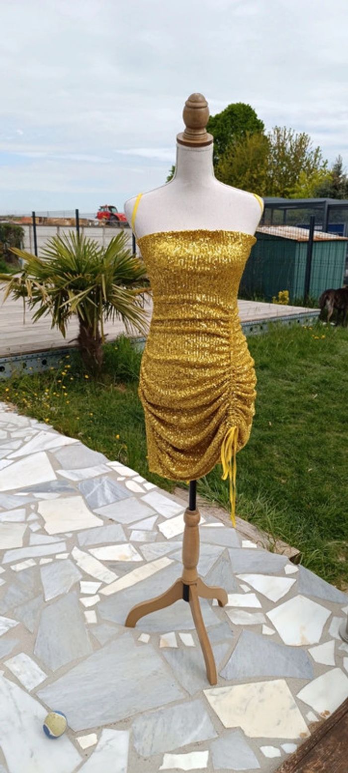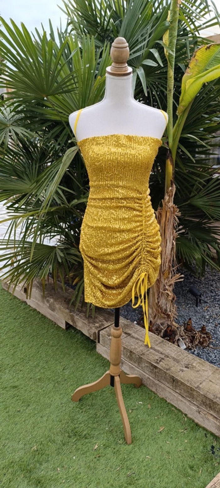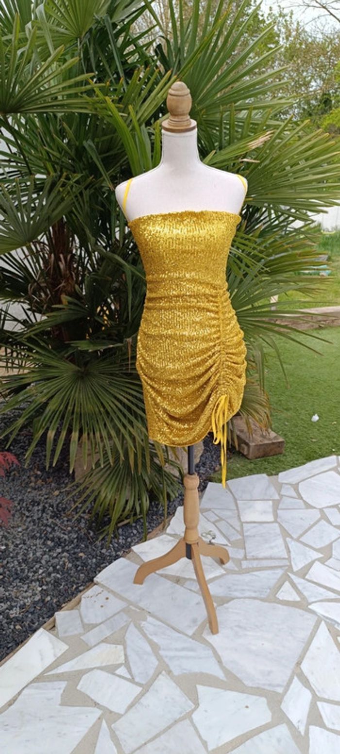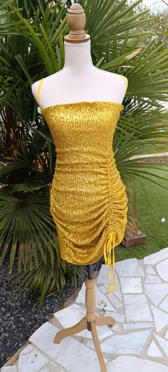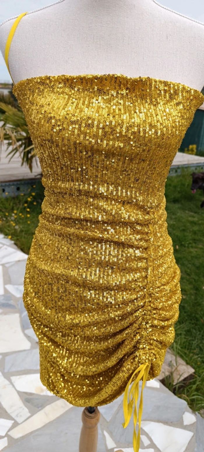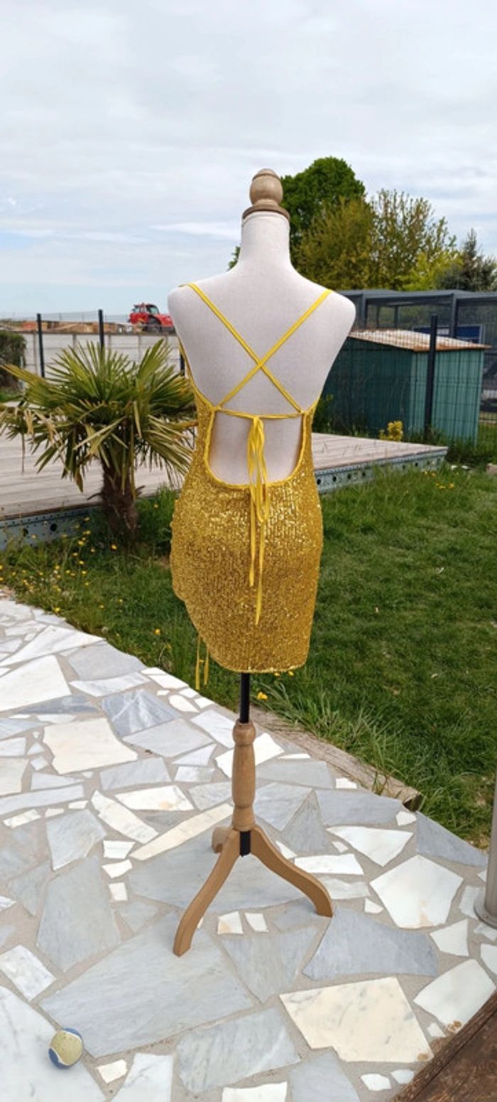 Robe paillettes jaunes dos ouvert pretty little thing taille M #julieVisM