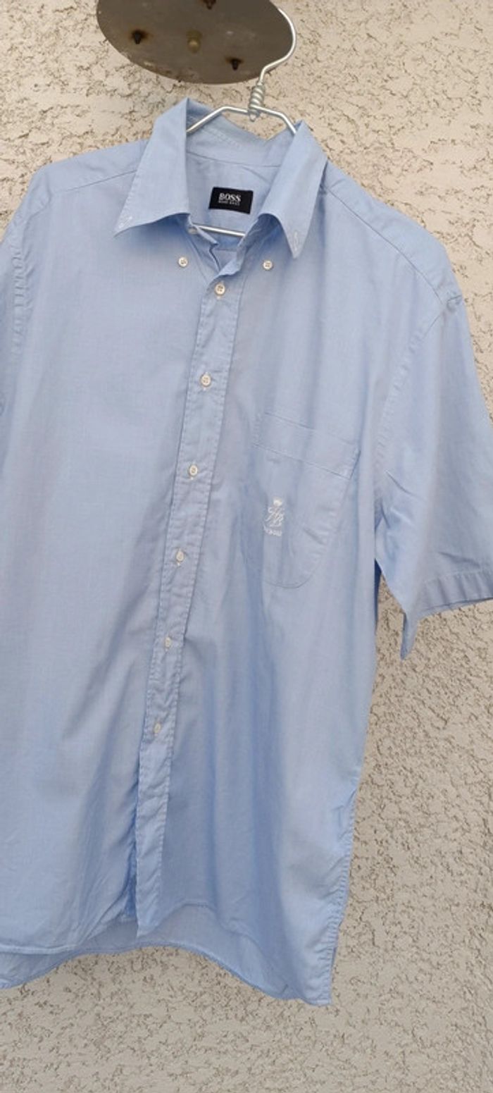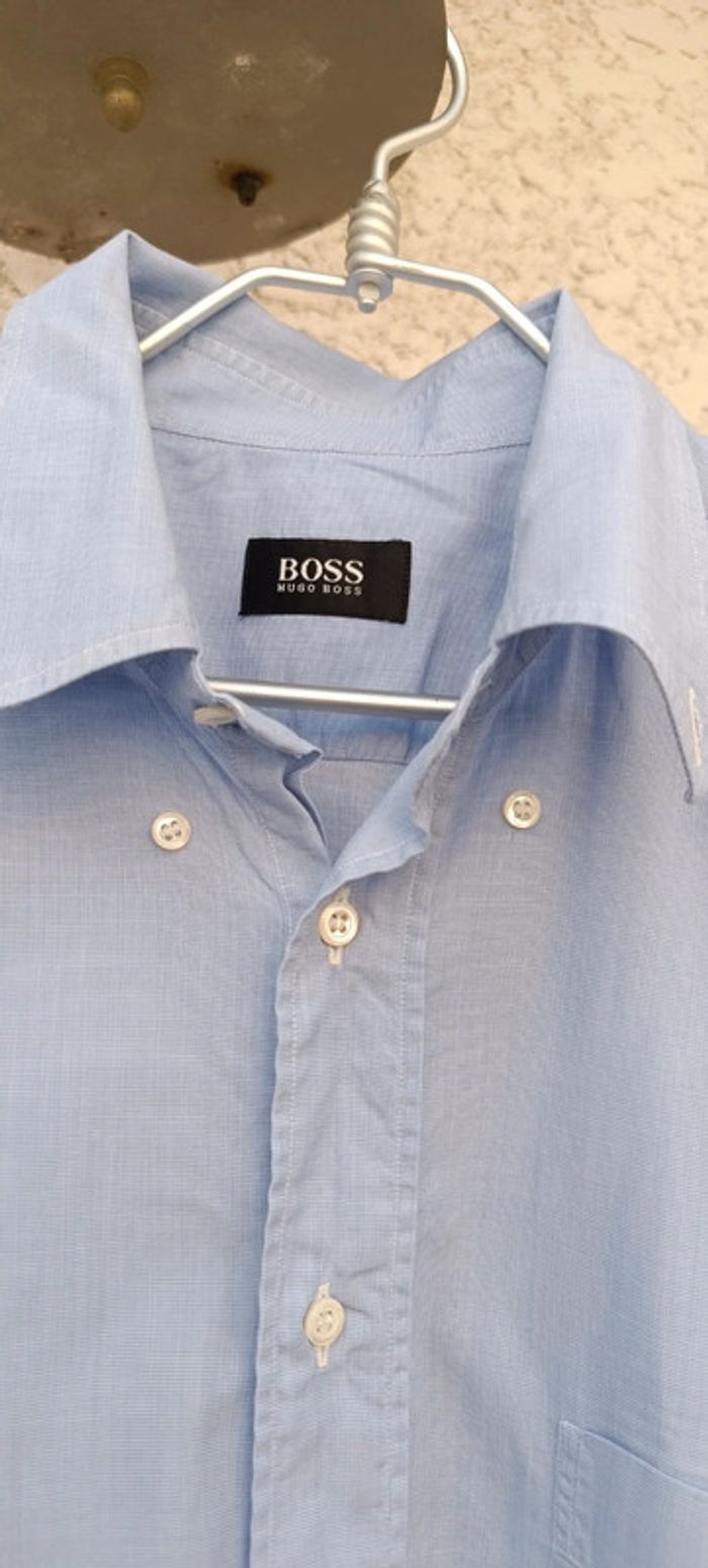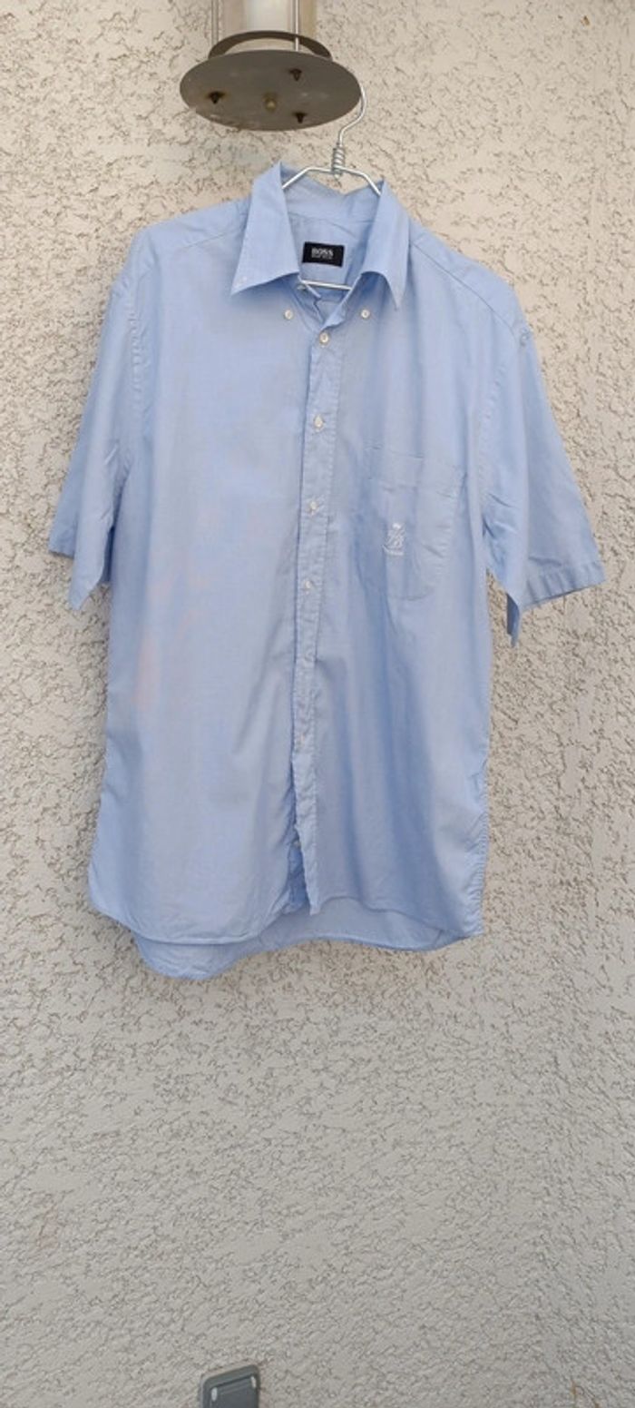 Chemise Hugo boss taille XL Légère mais très légère décoloration sous les bras du au bicarbonate avant lavage ne se voit pas porté Dimensions disponibles sur demande #julieVishommeXL