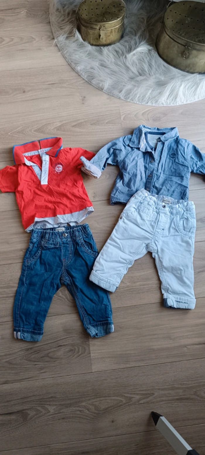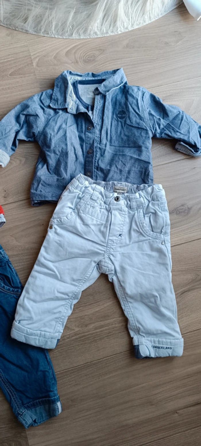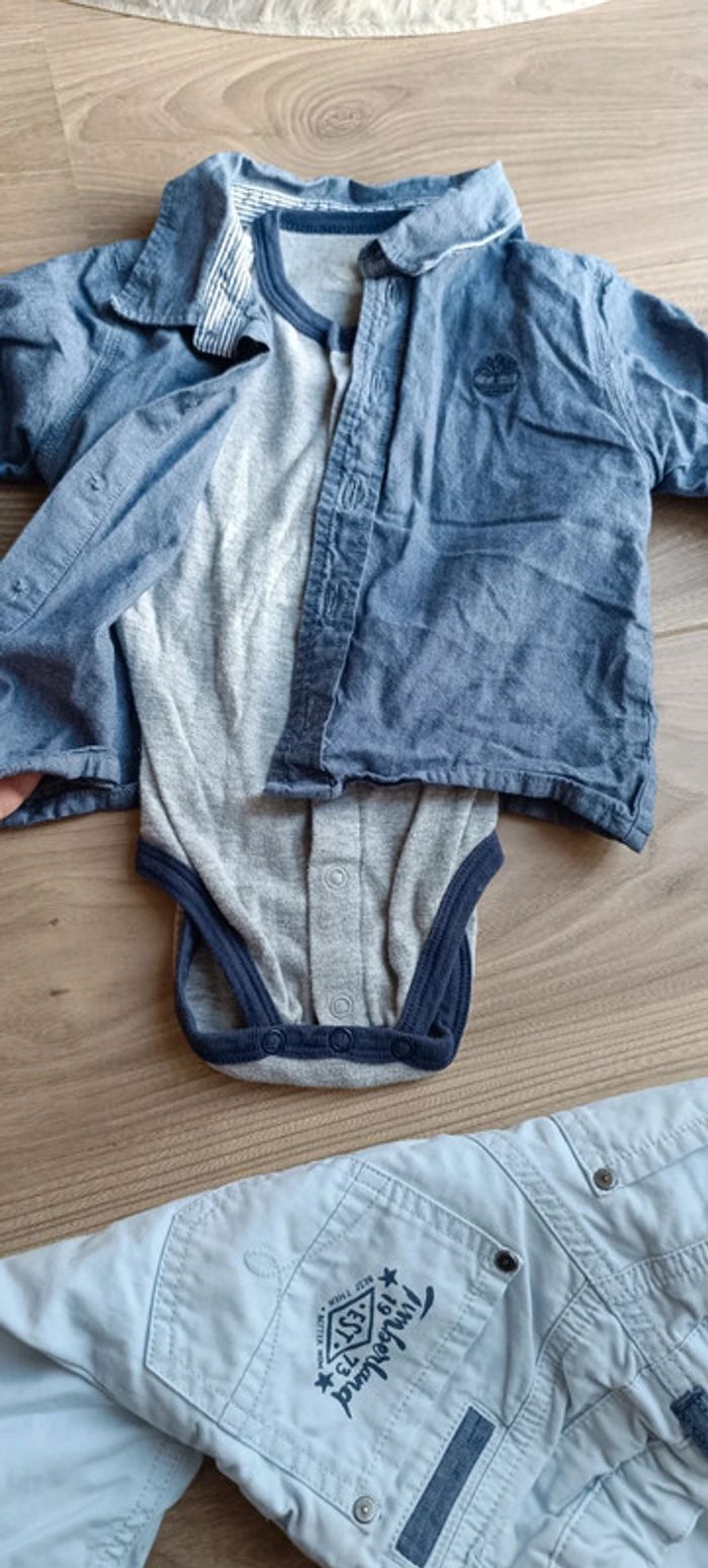 Lot 2 ensembles Timberland 12 mois Body intégré avc chemise à droite et pantalon épais T-shirt et pantalon plus léger a gauche #oscar12m