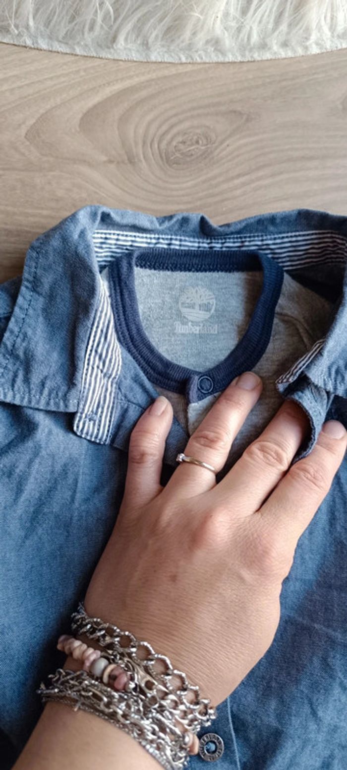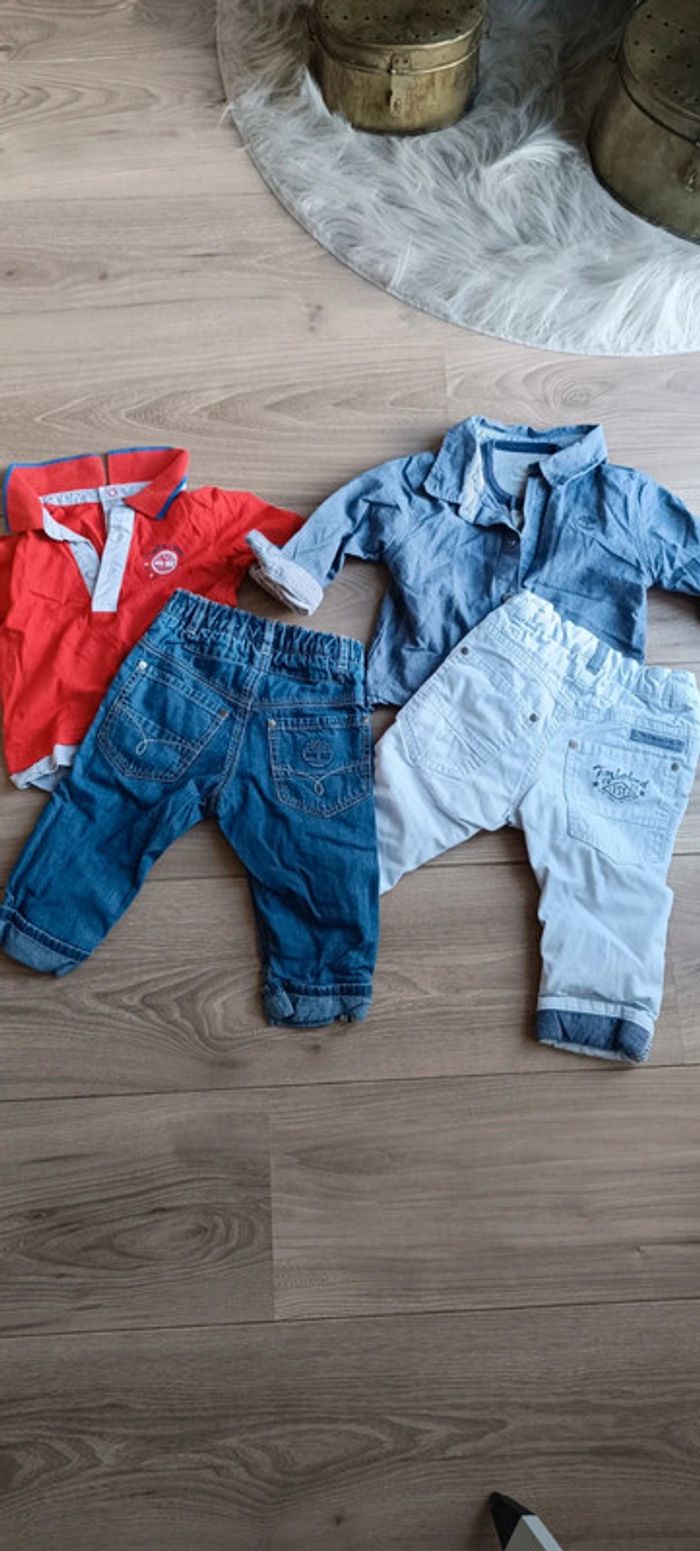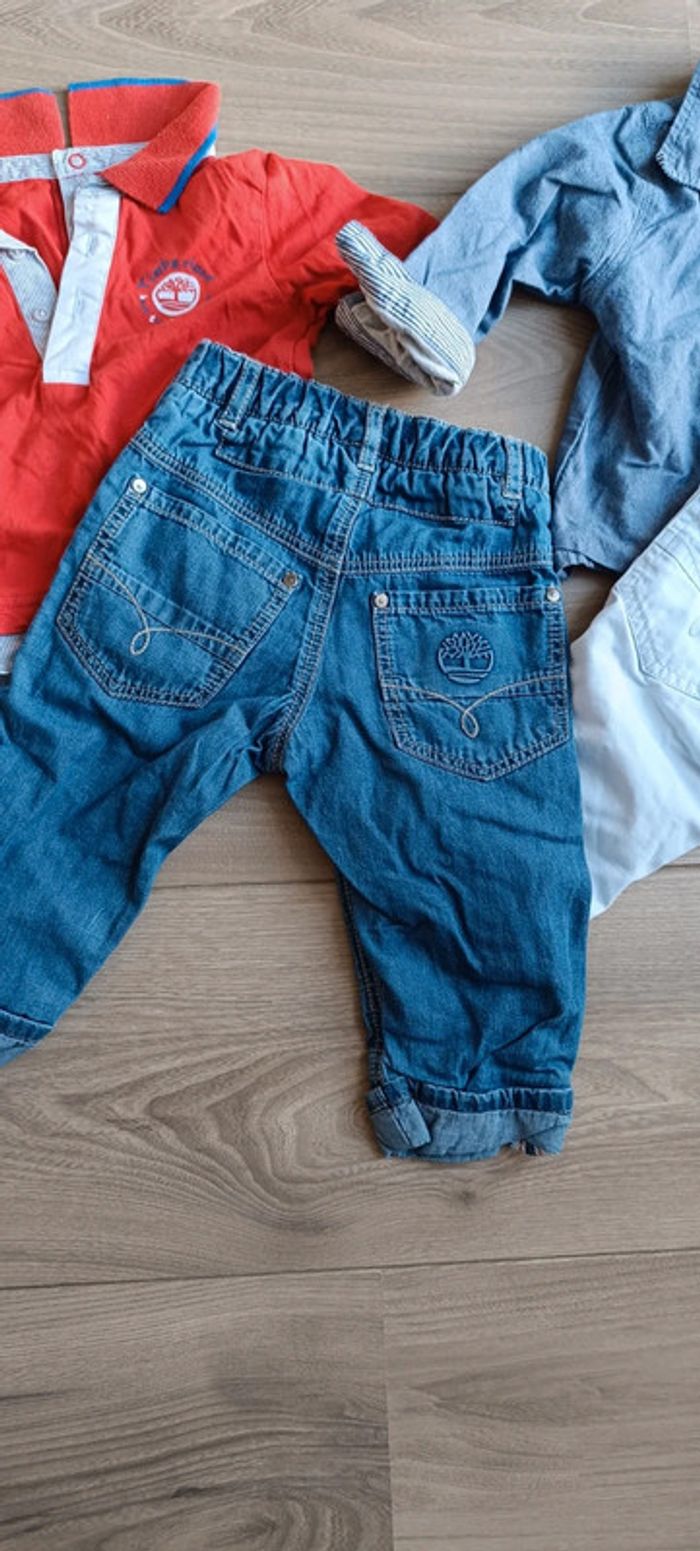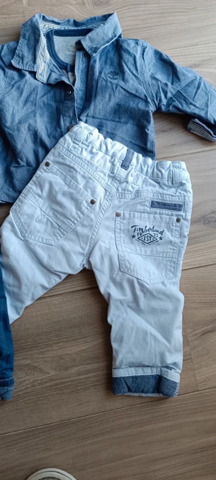 Lot 2 ensembles Timberland 12 mois Body intégré avc chemise à droite et pantalon épais T-shirt et pantalon plus léger a gauche #oscar12m