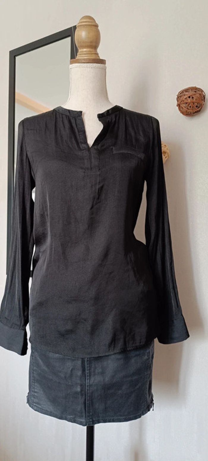 Liquette soyeuse noire taille S tex Chemisette manche longue #julieVisS