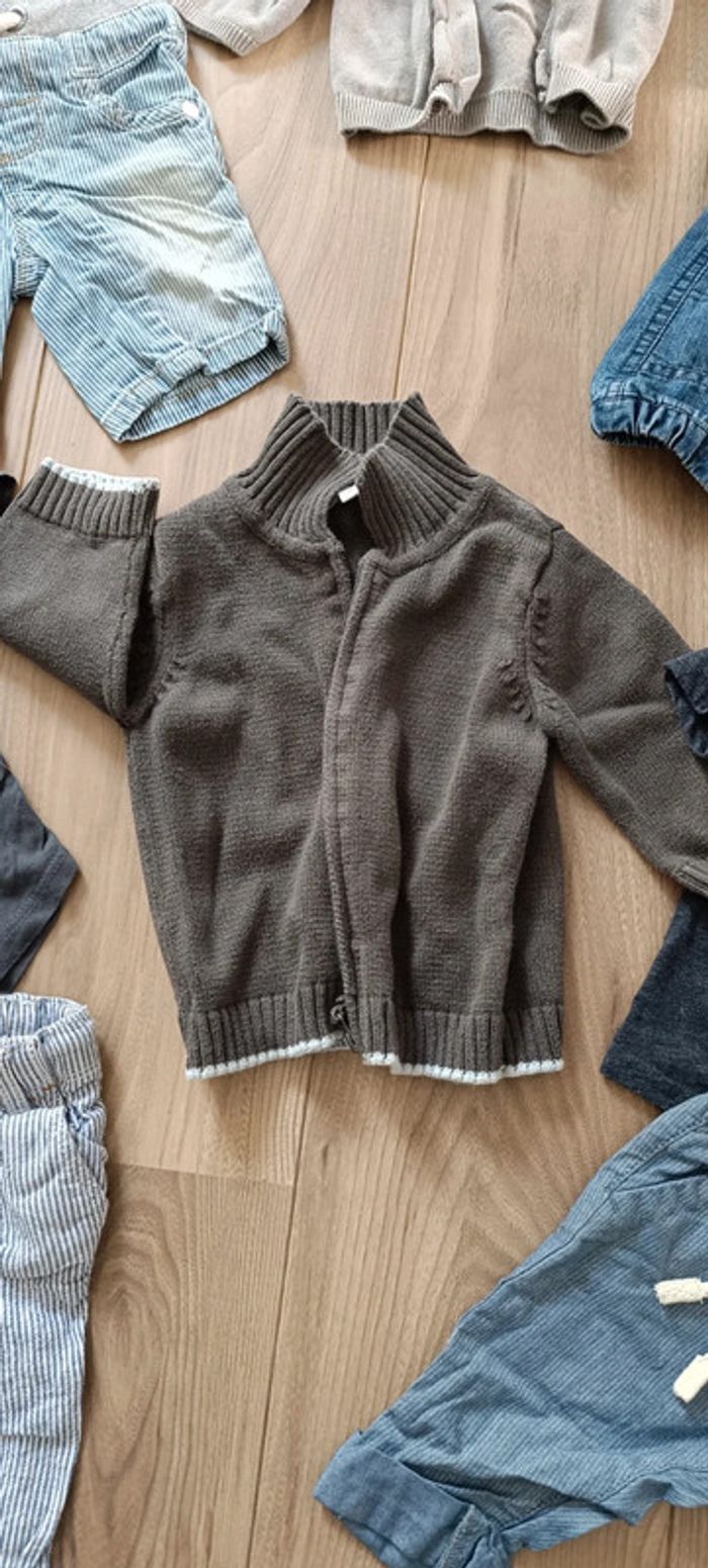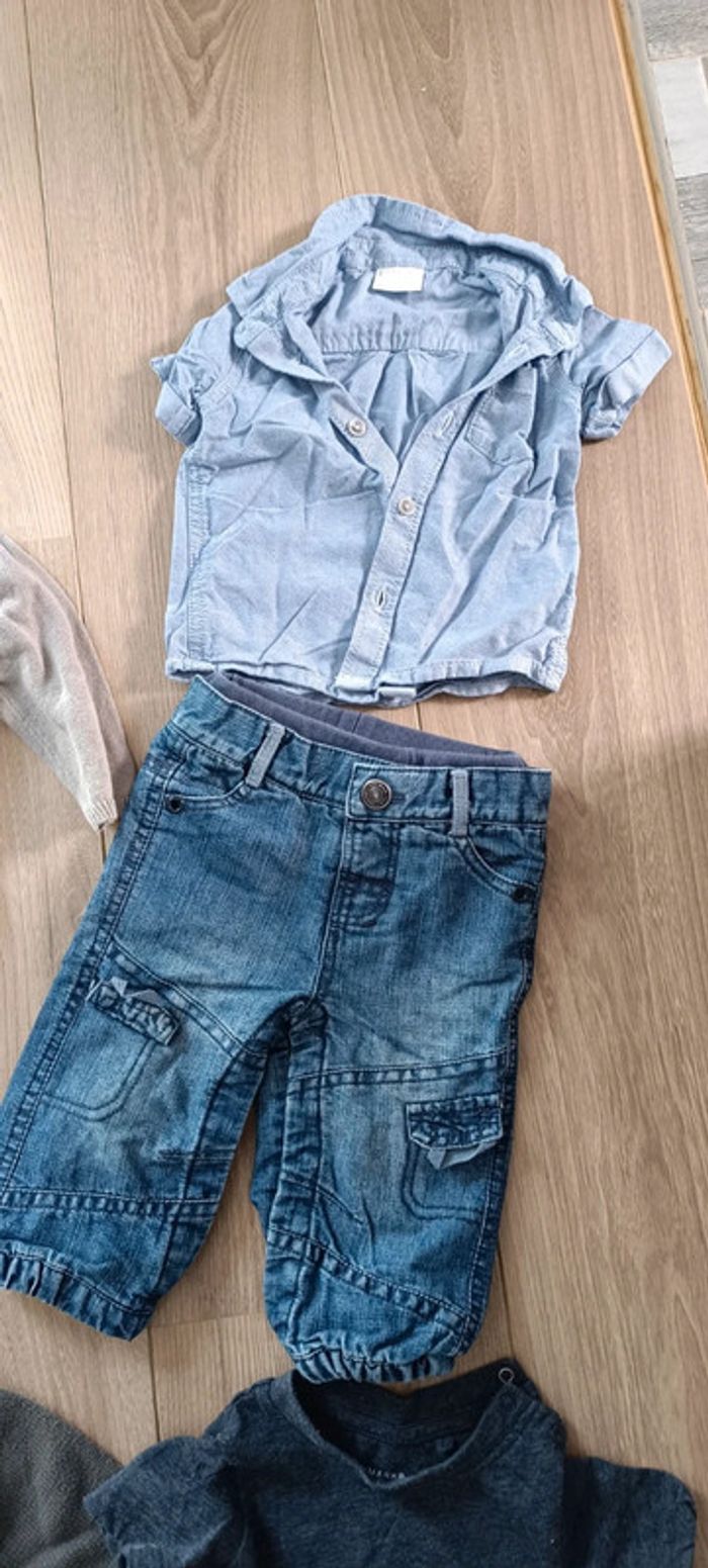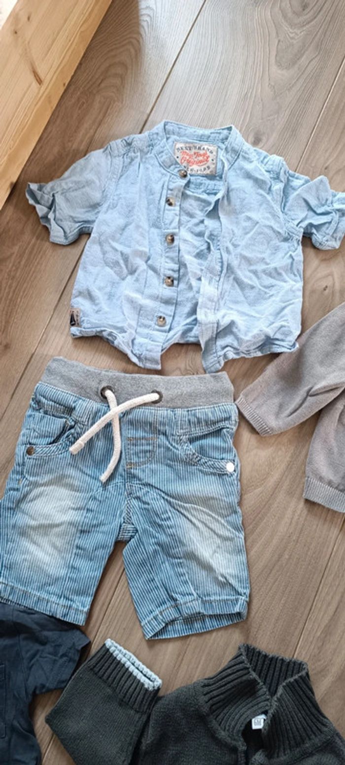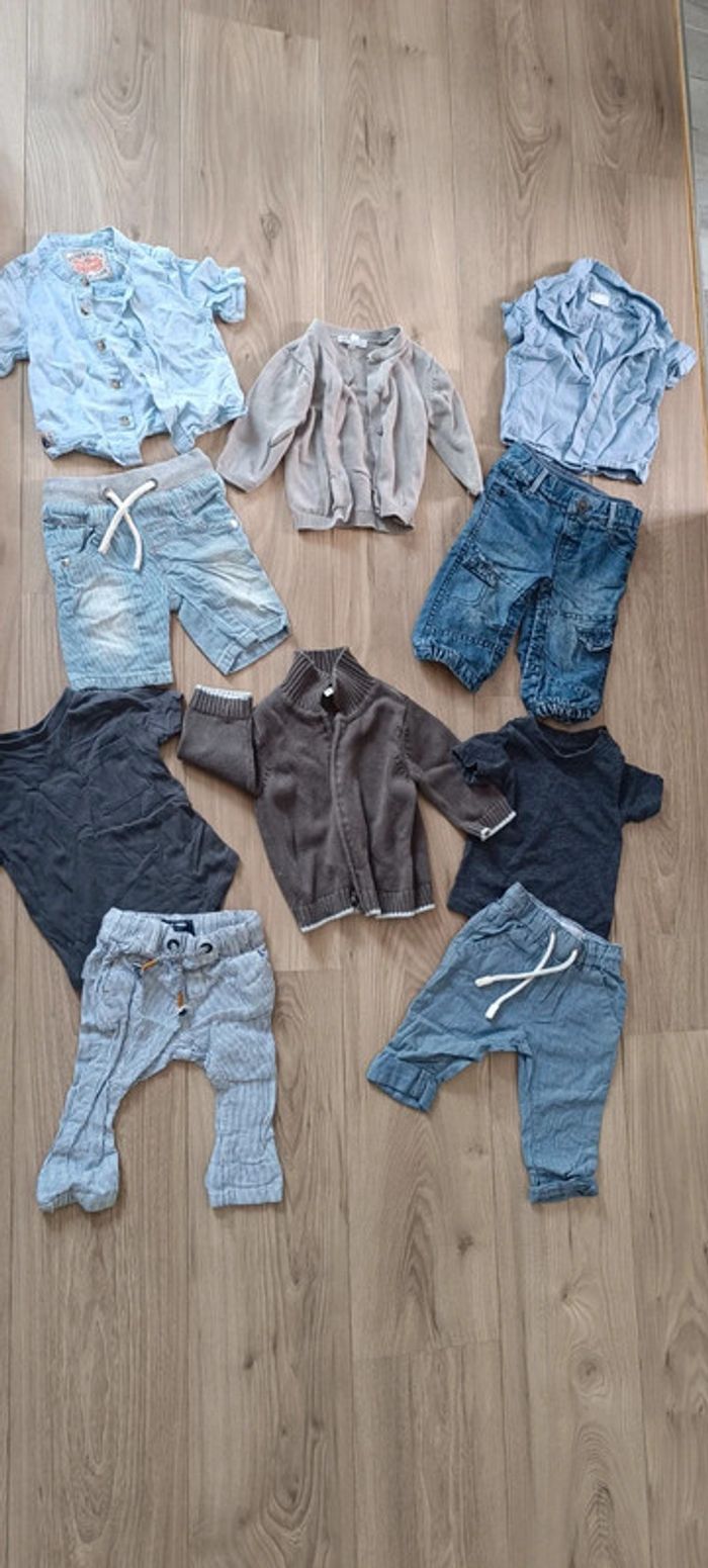 Lot 6 mois Bermuda + 2 pantalons léger next 1 jean tape a l'oeil 2 t-shirts river island et Primark 2 gilets 2 chemisette next #oscar6m