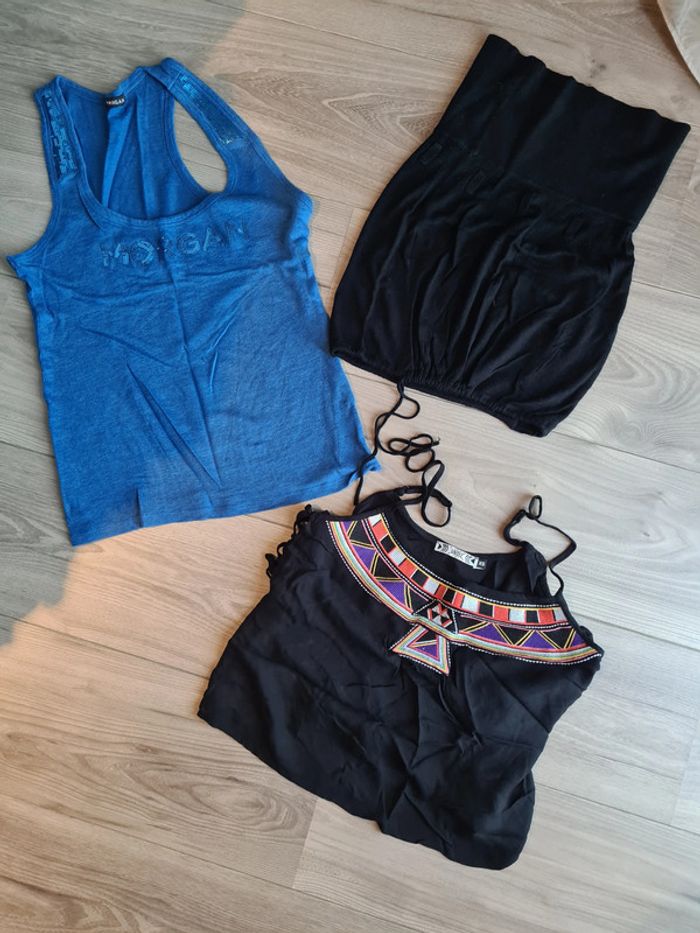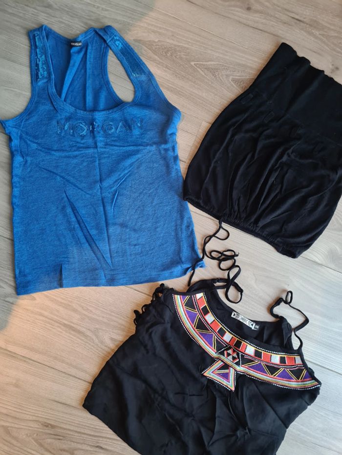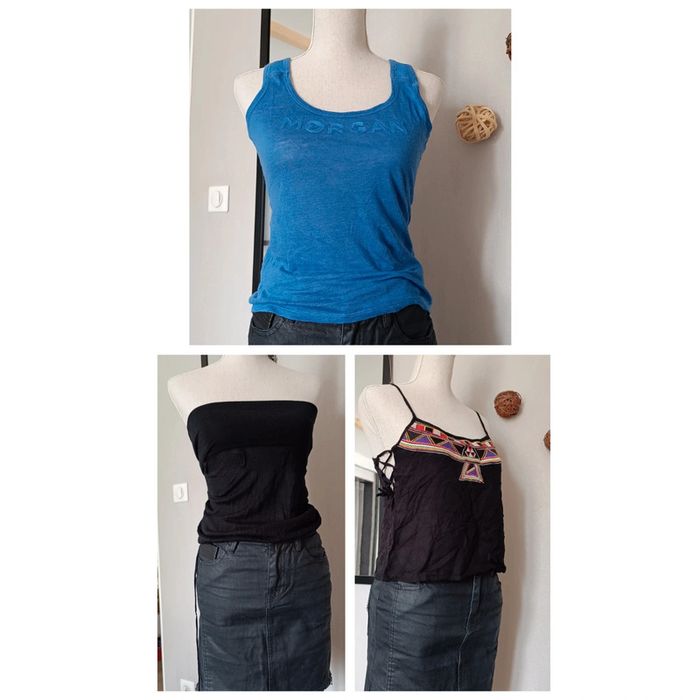 lot débardeurs bleu morgan noir à bretelles jamais porté undiz noir bustier kookai taille S #julieVisS #morgan #kookai
