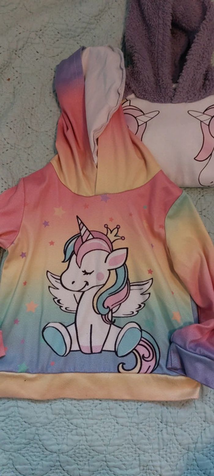 Lot de 4pulls 1 sweat licorne a capuches 1 sweat licorne 1 Rennes 1 rose à encolure dentellée
