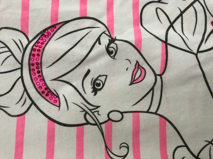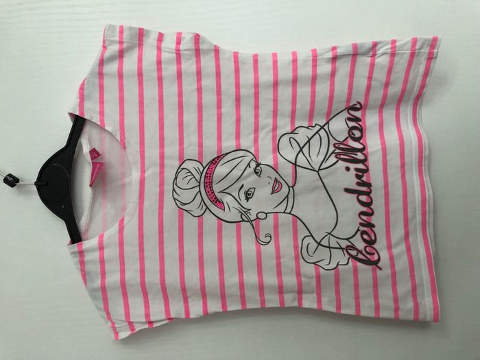 Haut fille manches courtes. Motif rayures et Cendrillon Marque Disney Taille 6 ans Léger défaut dans le cou de Cendrillon (cf photo 2)