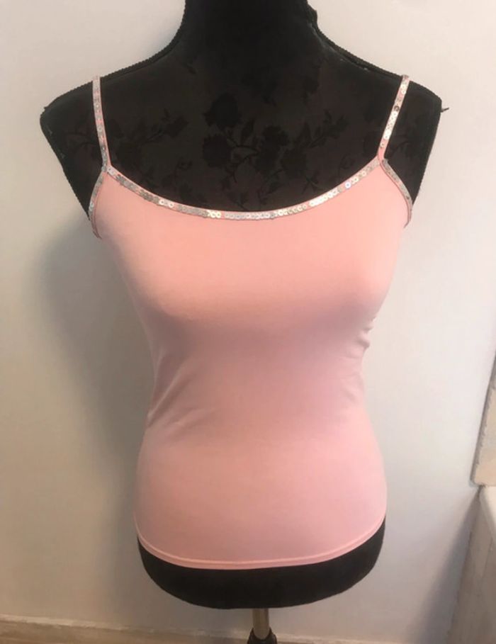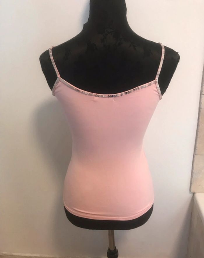 Debardeur rose avec sequin, marque Mim, taille 2 (équivaut à un 36-38) Valeur pour un échange : 2€ de + #crisprolzhaut #debardeursequin #mim3638 #