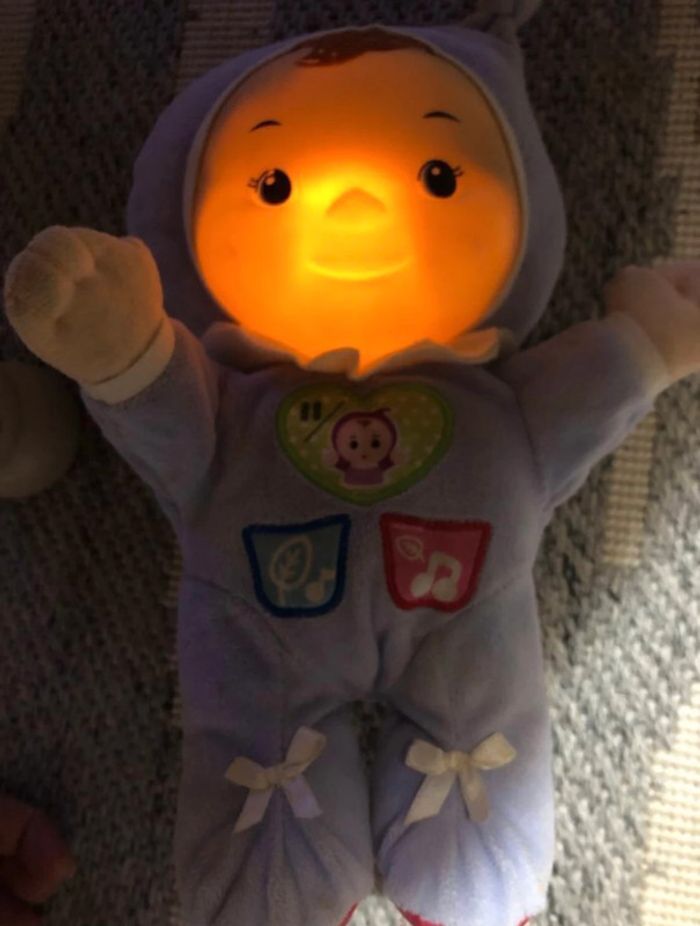 Une poupée au visage lumineux pour des nuits paisibles !