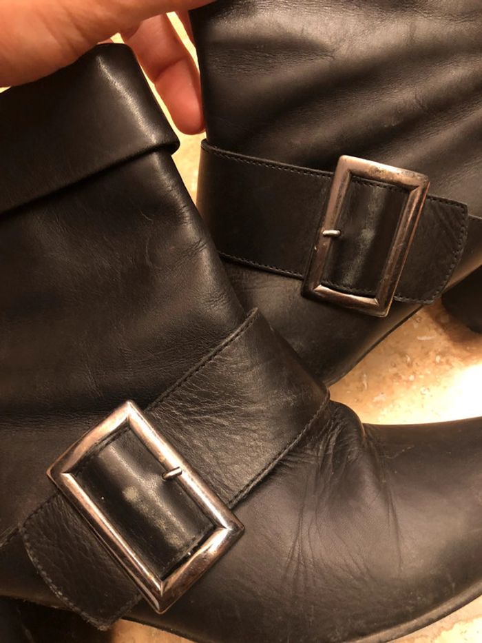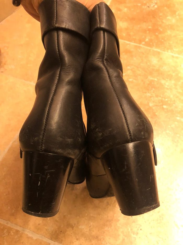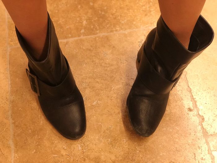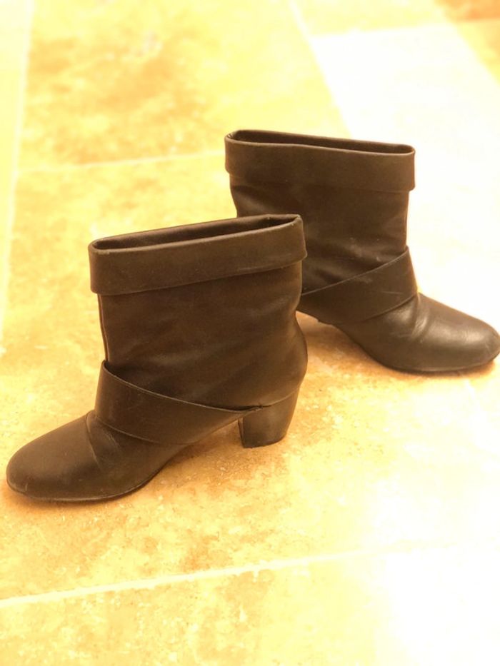 Petites bottines noires, beaucoup portées, mais reste quand même dans un état convenable, c’est pour cela que je l’ai met en vente. Elles s’enfilent, sont confortables, avec un talon stable. Taille 38, mais peuvent convenir à un 38,5. 🔄Valeur pour un échange : 1€ de + #crisprolzchaussures #bottinesnoires #bottines3839