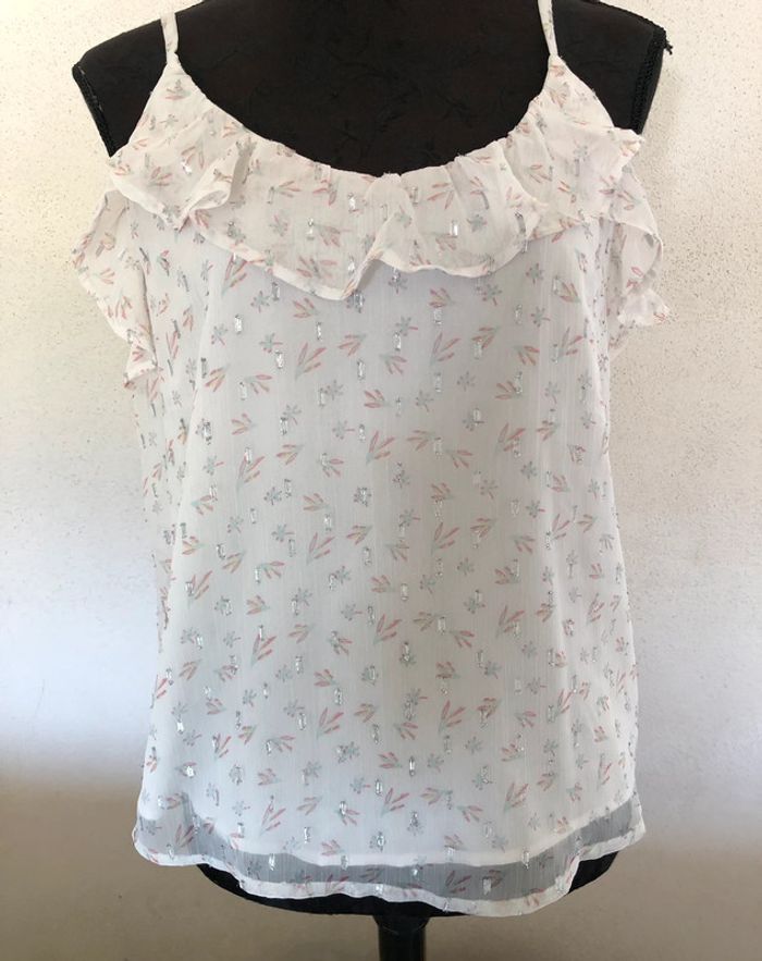 Jolie haut fleuri, marque kiabi, taille M,. 🔄Valeur pour un échange : 3€ de + #crisprolzhaut #hautkiabi38 #hautkiabi36 #débardeurfleuri #hautvoilage #debardeurfluideblanc