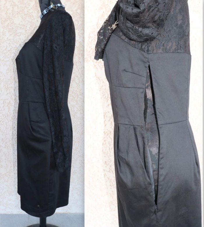 Robe manches longues en dentelle, taille 40, peu mise, fermeture éclaire sur le coté, deux poches sur le cotés. Valeur pour un échange : 3€ de + #crisprolzrobejupe #robenoire40 #3suisses #dentellenoire #