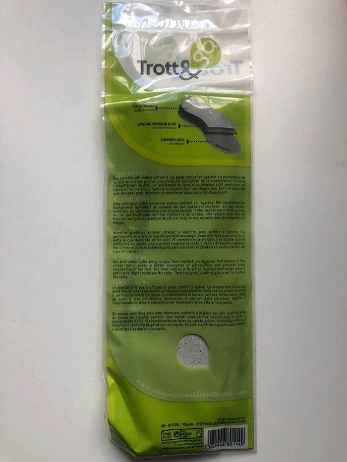 Semelles fraicheur active, taille 40-41. Charbon actif, fabriqué en France.