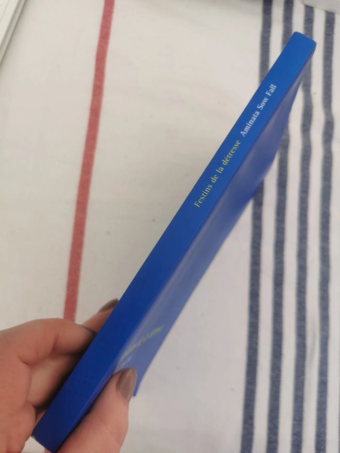 Festins de la détresse, livre de Aminata Sow Fall, éd. d'en bas, 2005, 158p., 231g. Le livre au forma brochet, n'a jamais été ouvert, mais marquépar le temps au niveau de la couverture un peu et à l'intérieur de la couverture les aches de jaunissement. #festinsdeladetresse #aminatasowfall #editionsdenbas