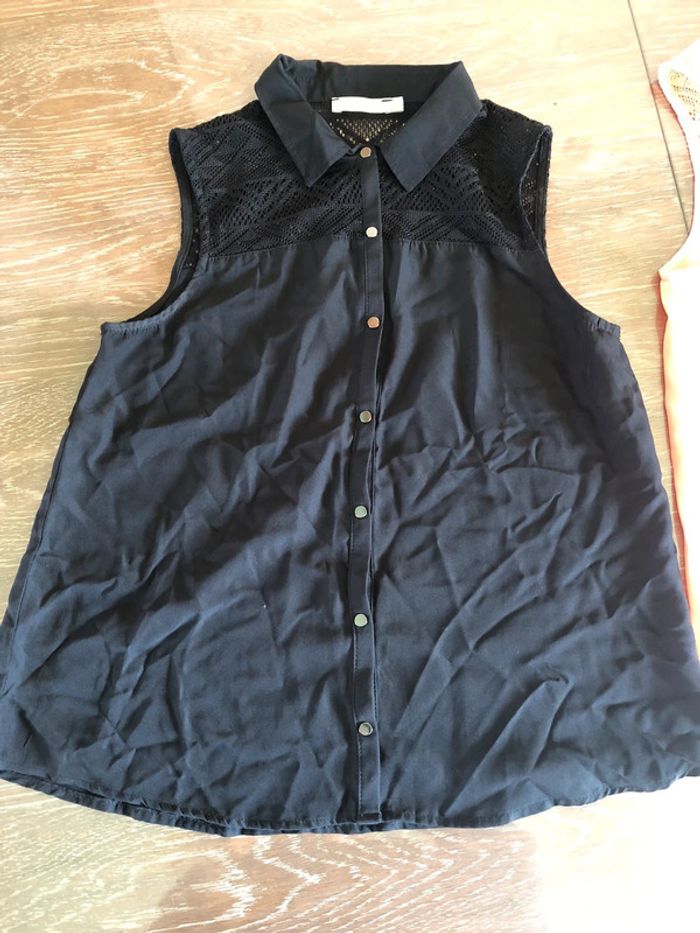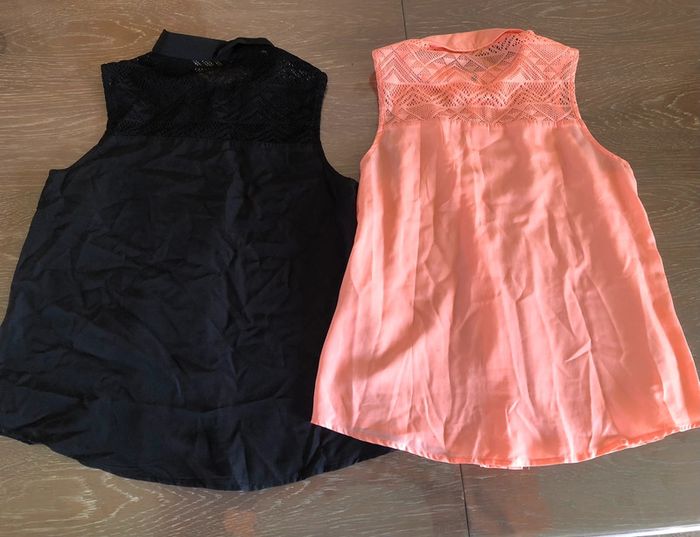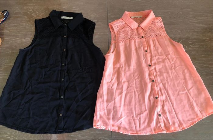 Lot 2 chemises manches courtes, taille 16ans, marque Gemo. Une rose et une noire. En bon état, il faut juste les repasser.