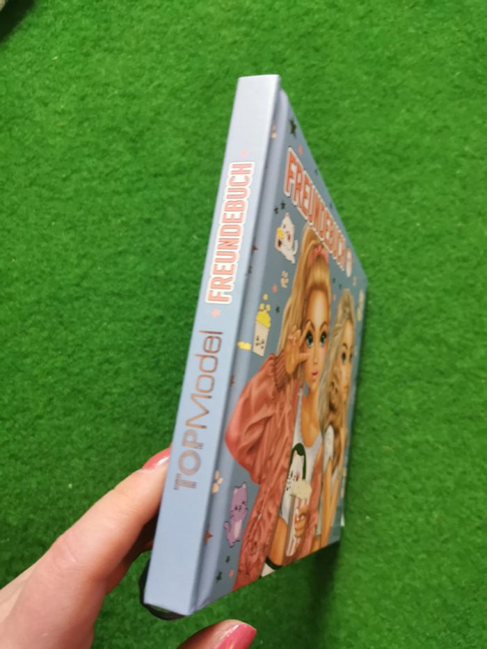 Carnet d'amis en allemand Freundebuch Top Model, en bon état, les premières pages son manquantes, dont une est séparée du livre. Le carnet est en très bon état sauf ça. La couverture est rigide et un peu rembourrée. Format paysage. Poids 228g. #carnetdamis #freundebuch #topmodel