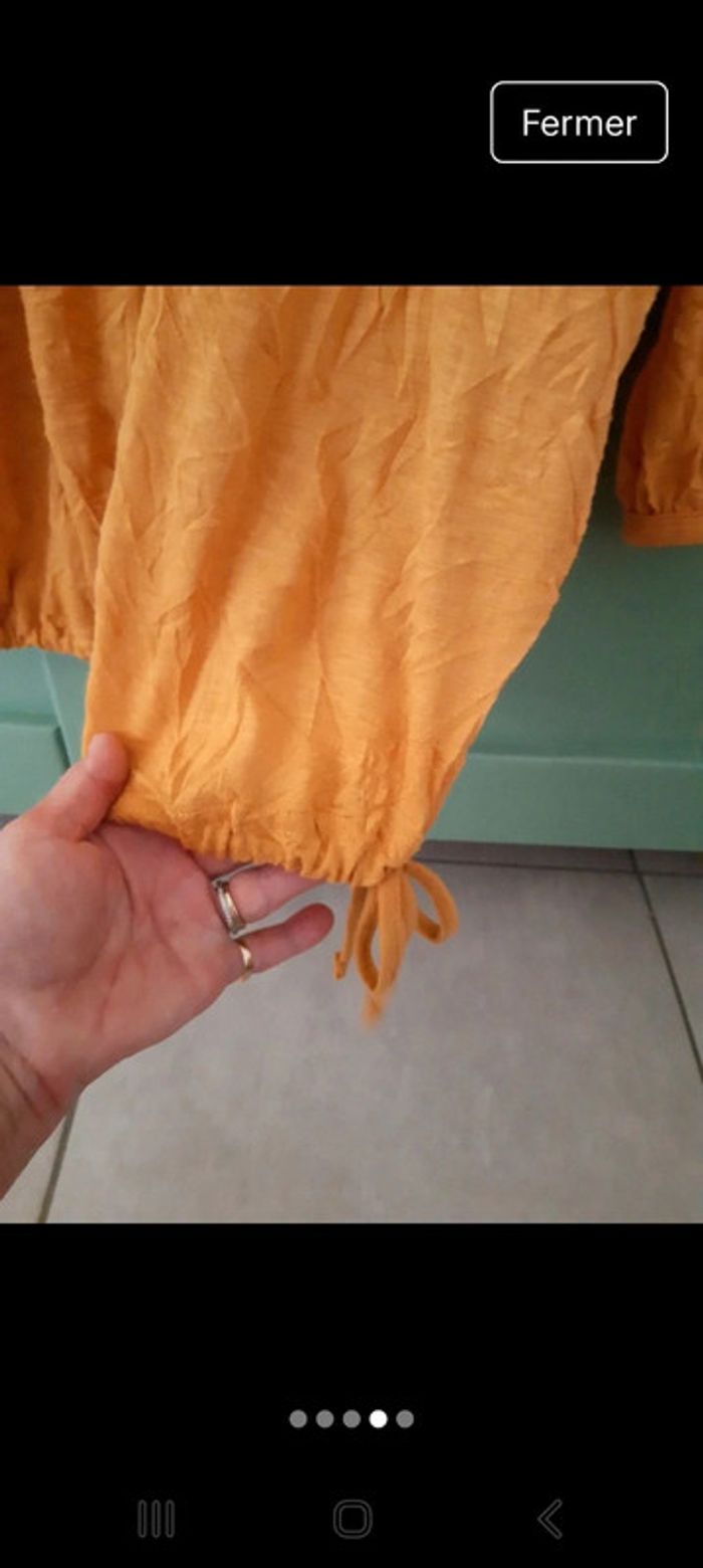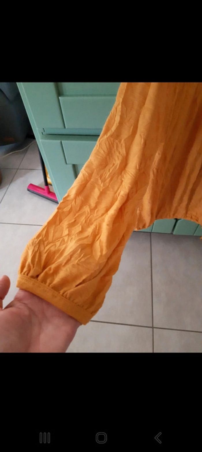 Blouse légère tissu gaufré ou chiffonné lacet de serrage manches longues Couleur moutarde Taille 42 #sevileano_blouses