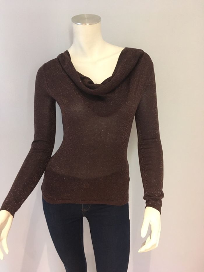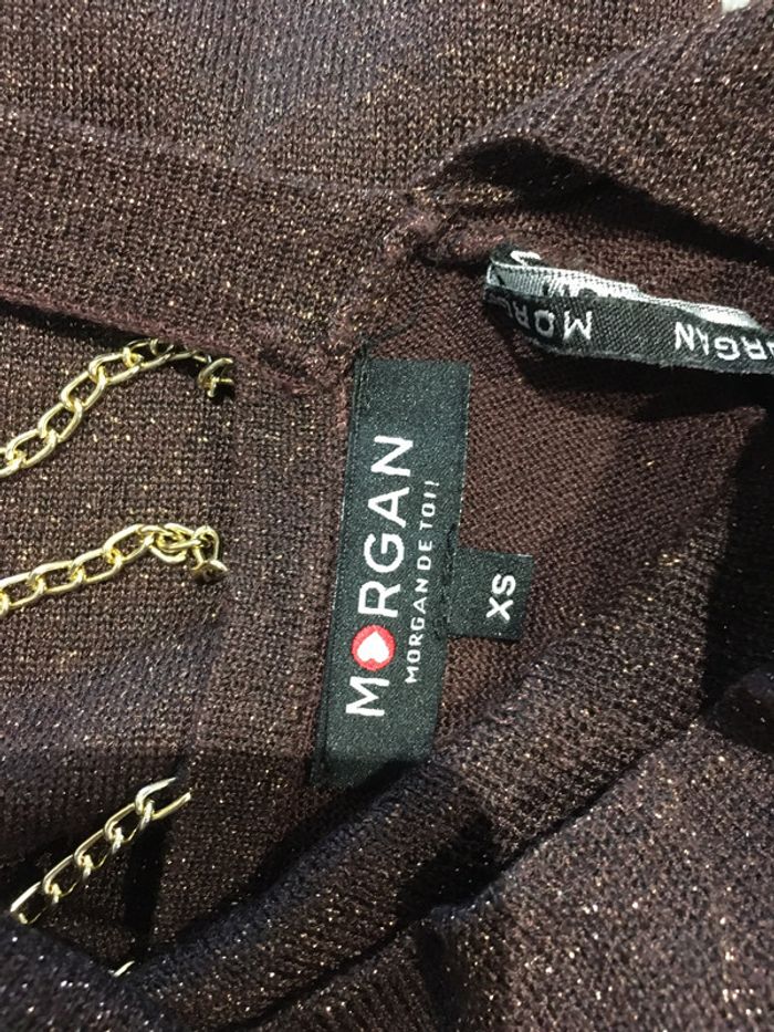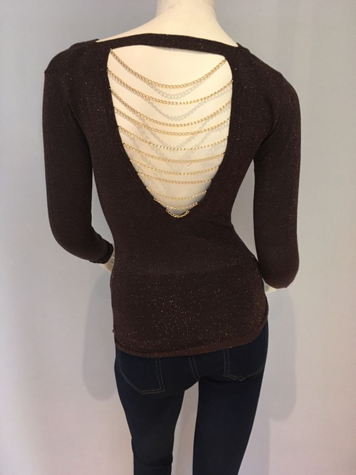 blouse Morgan brune à paillettes, taille xs ( les chaînes dans le dos sont détachable et rattachable)