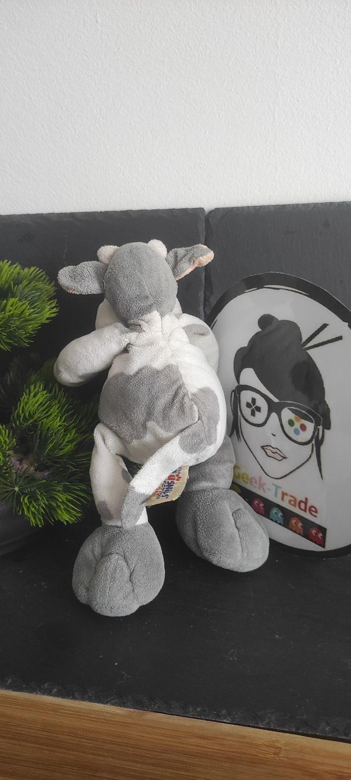 doudou peluche vache blanc beige gris taches the plushies collection ancien - photo numéro 2