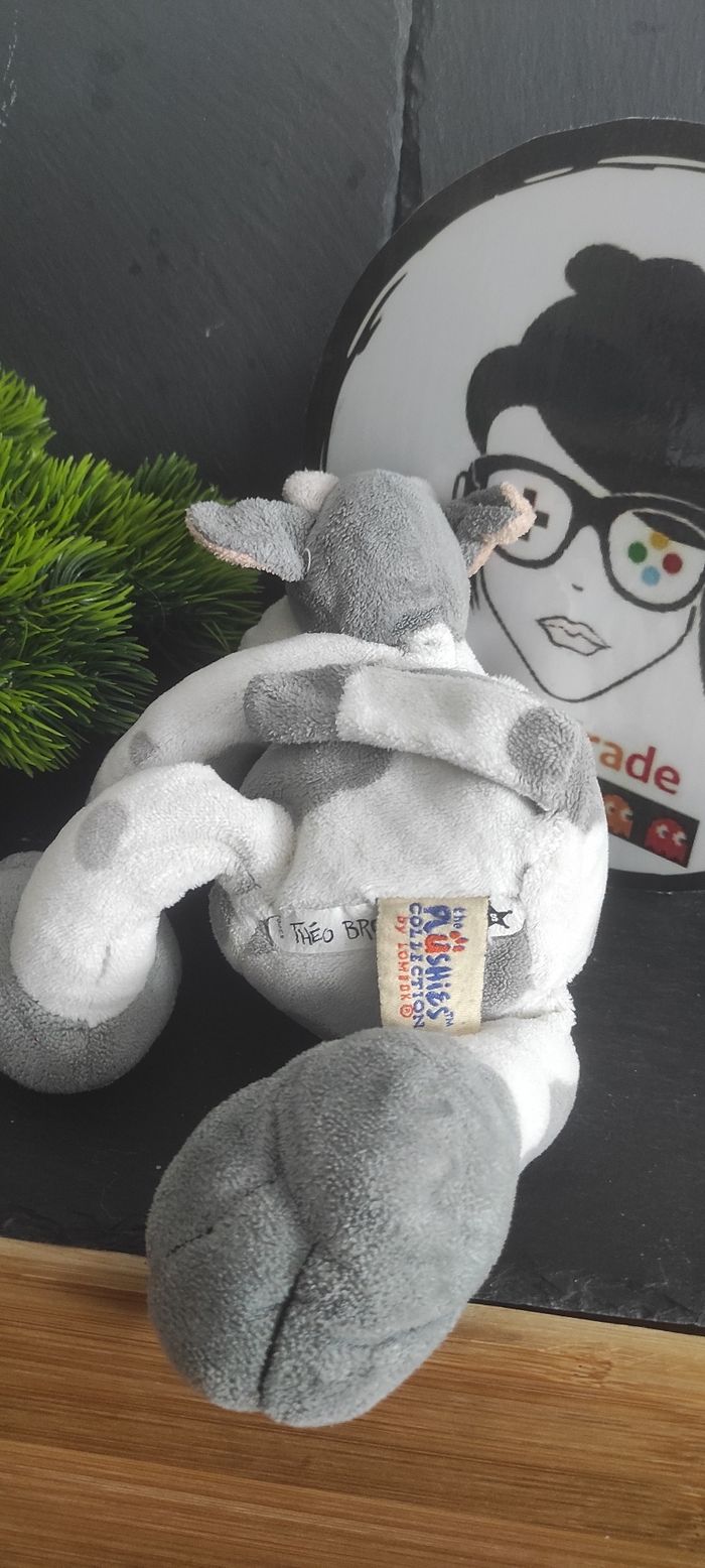 doudou peluche vache blanc beige gris taches the plushies collection ancien